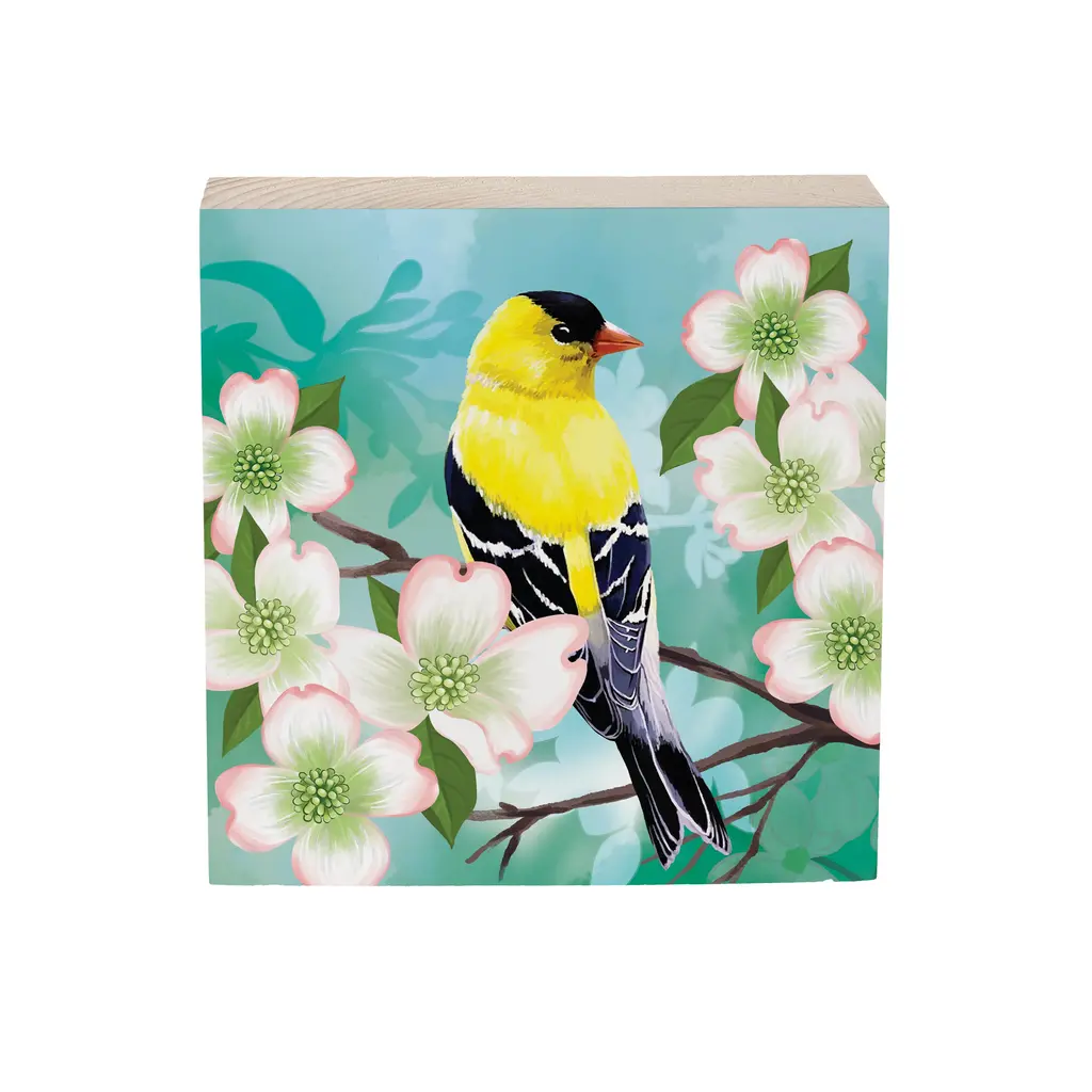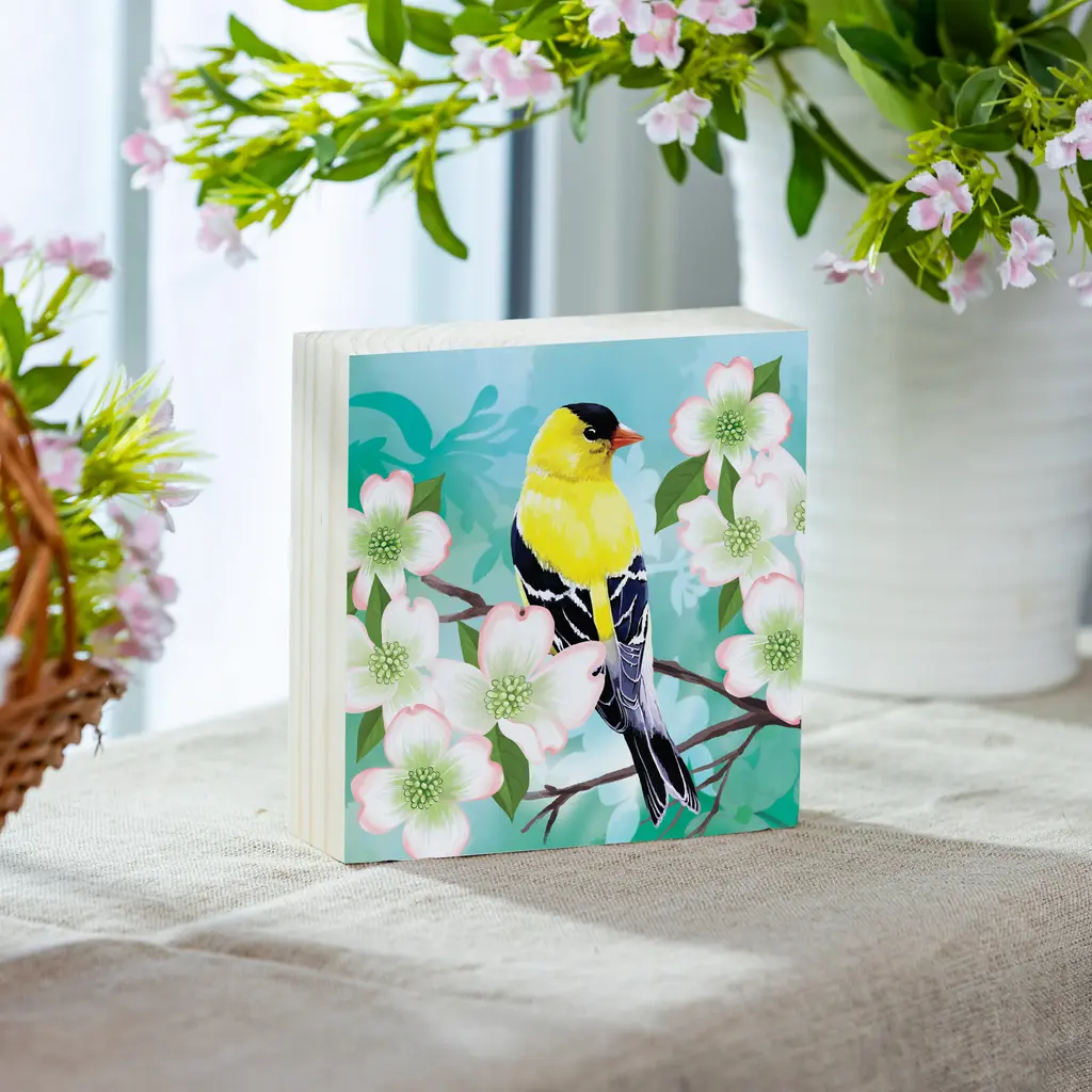 What She Shed Goldfinch Dogwood Blossoms Sign Wood Block, 6"x6"
