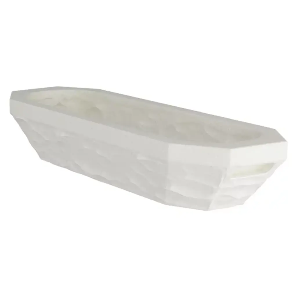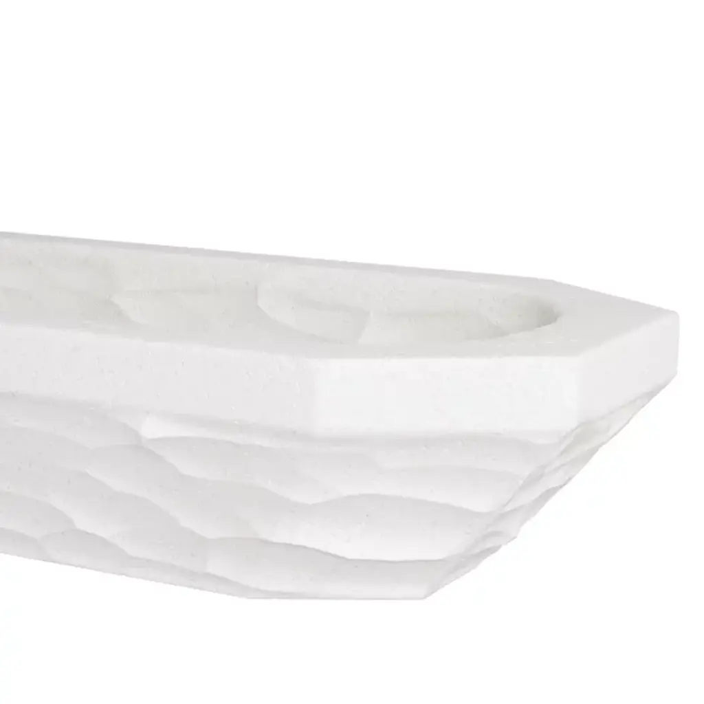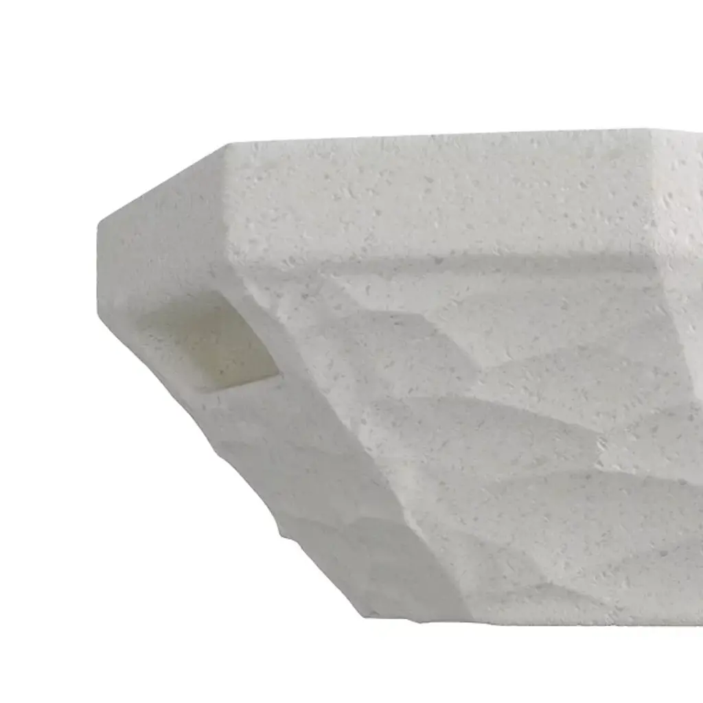 The Zurich Centerpiece from Arteriors is crafted from durable ricestone. Zurich promises long-lasting quality. Its simply designed form, with angled edges, adds a touch of geometric flair to your decorative arrangement, making it a versatile complement to various design styles. Resembling the shape of a bread bowl, it exudes a heartwarming aesthetic.
