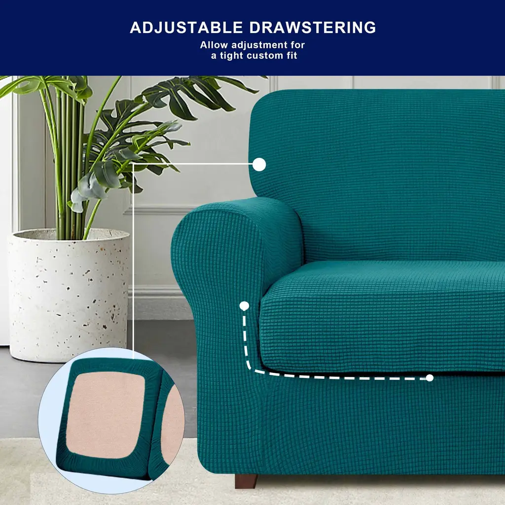 Subrtex 5-Piece Stretch Loveseat Slipcover Sets With 2 Backrest Cushion Covers And 2 Seat Cushion Covers - Light Blue