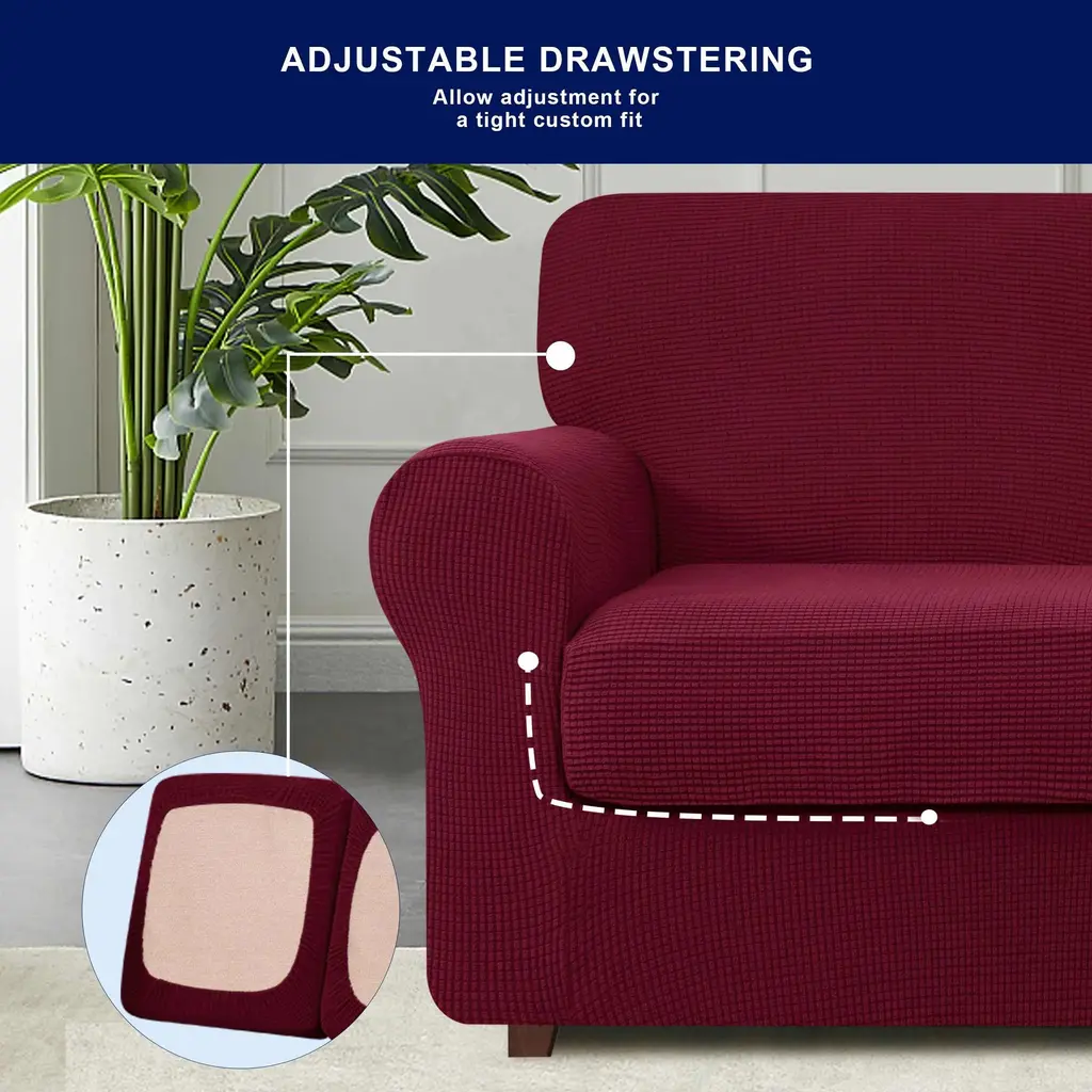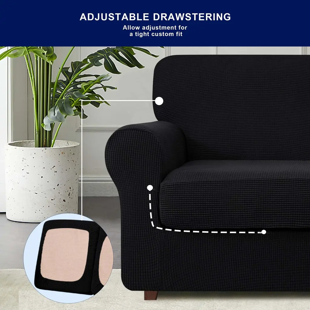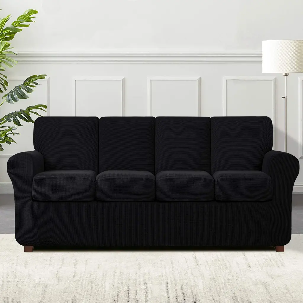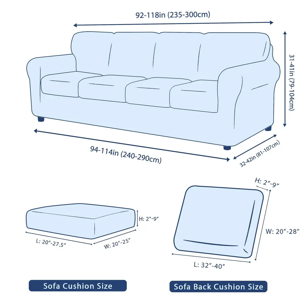 Protect your sofa from accidental spills, pet scratches, and daily wear and tear with Subrtex 9-Piece Stretch Sofa Slipcover Sets. Made with soft and stretchy fabric, these slipcovers provide all-round protection and come with adjustable elastic loops and drawstrings to ensure a snug fit. Crafted from premium 95% polyester and 5% sturdy texture fabric, these slipcovers are durable and resilient. With their patented one-piece construction and built-in elastic corners, they offer a semi-custom fit without slipping or constant tucking. These slipcovers are easy to install and care for, with machine washable fabric and instructional tags included.Features:Measuring Guide:Available Size:Product Specification:Package Included: