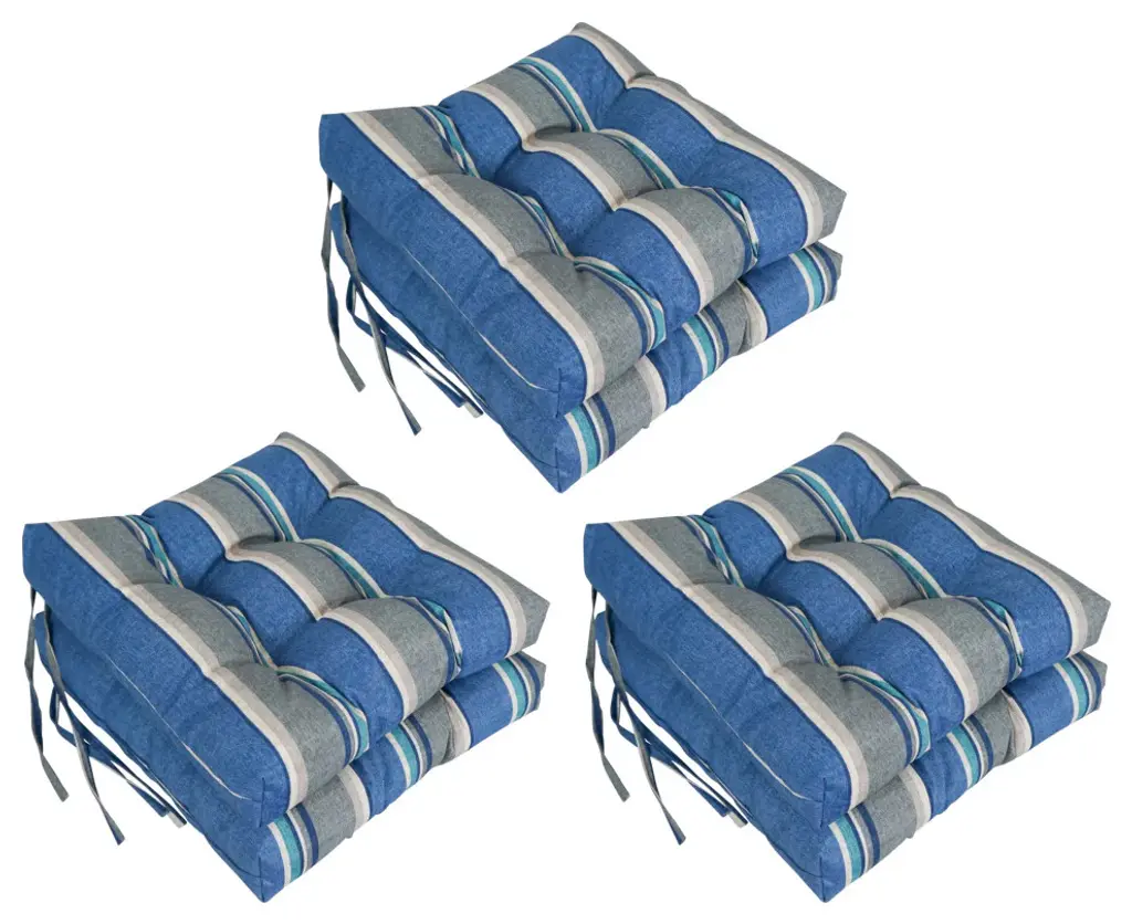 16" Patterned Outdoor Square Tufted Chair Cushions, Set Of 6, Sovaro Denim