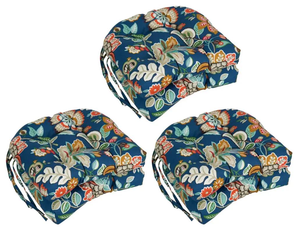 16" Patterned Outdoor U-Shaped Tufted Chair Cushions, Set Of 6, Telfair Peacock