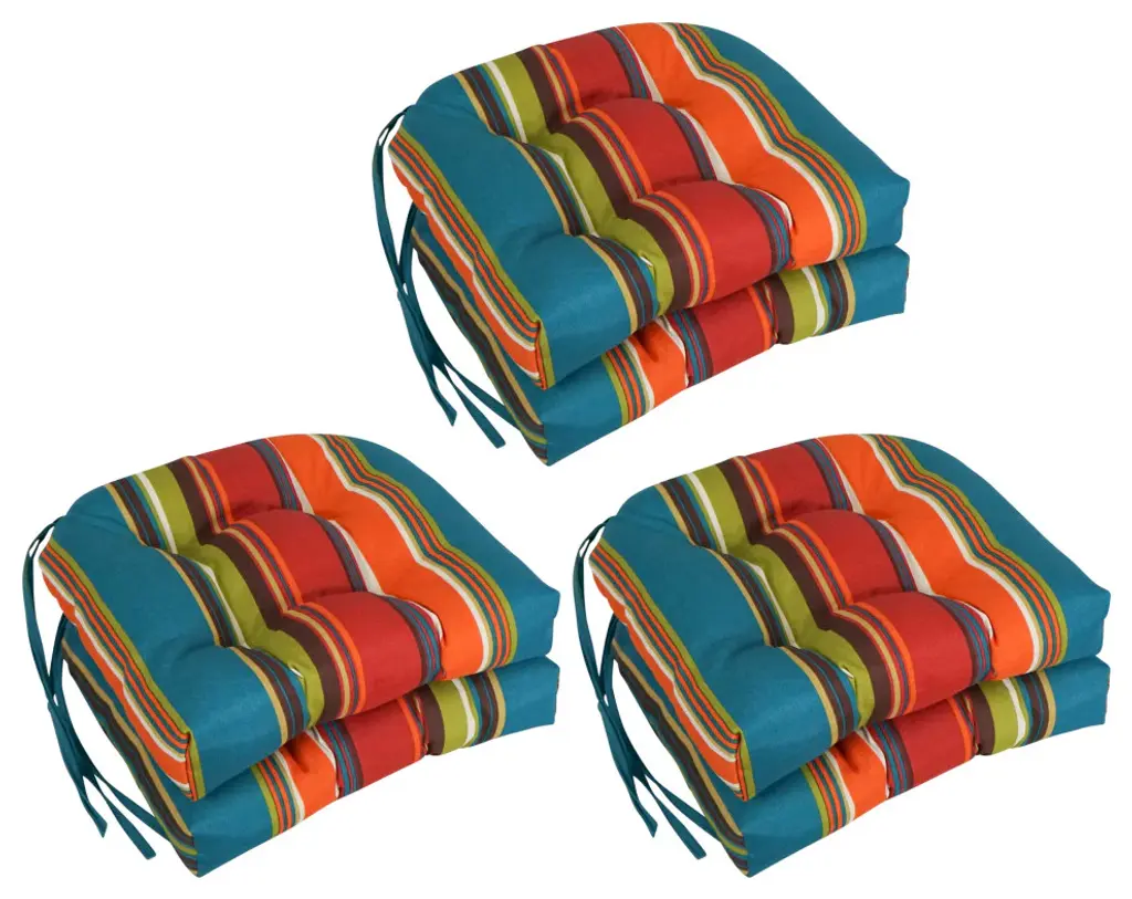 16" Patterned Outdoor U-Shaped Tufted Chair Cushions, Set Of 6, Westport Teal