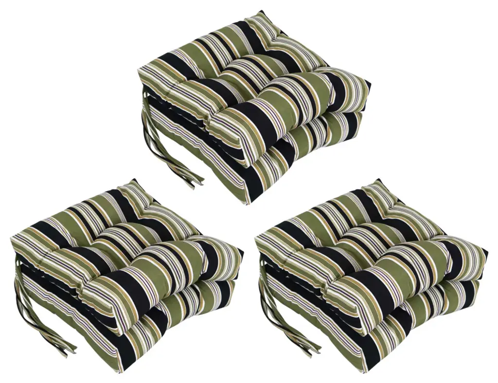 Add a splash of color and style to your outdoor furnishings with these chair cushions. These cushions feature a classic tufted cushion design and available in a variety of patterns of premium UV and weather-resistant 100-percent spun polyester outdoor fabric.
