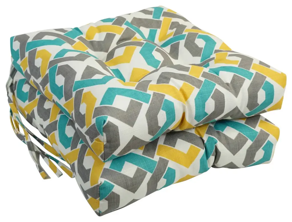 Add a splash of color and style to your outdoor furnishings with these chair cushions. These cushions feature a classic tufted cushion design and available in a variety of patterns of premium UV and weather-resistant 100-percent spun polyester outdoor fabric.