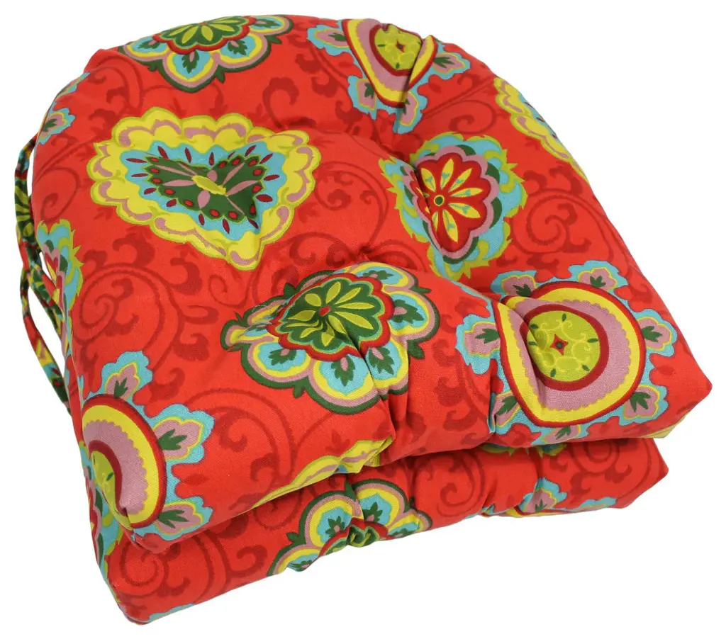 Add a splash of color and style to your home furnishings with these chair cushions. These cushions feature a classic tufted cushion design and available in a wide variety of colors of premium spun polyester fabric. Includes four cushions with tiesAdd a splash of color and style to your home furnishings with these chair cushionsThese cushions feature a classic tufted cushion design and available in a wide variety of colors of premium spun polyester fabricIncludes four cushions with tiesProduct Materials - 100% Polyester
