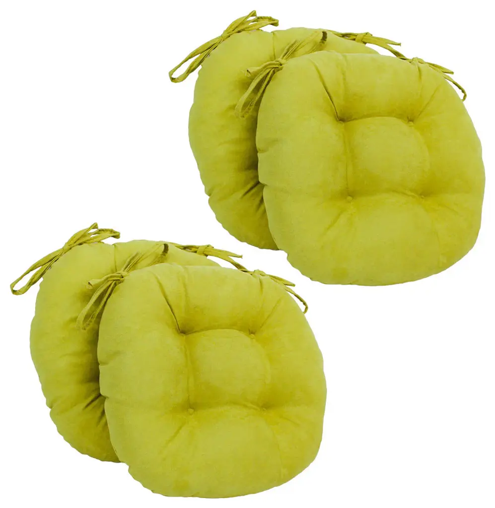 Add a splash of color and style to your home furnishings with these chair cushions. These cushions feature a classic tufted cushion design in a spun polyester fabric. Includes four cushions with ties