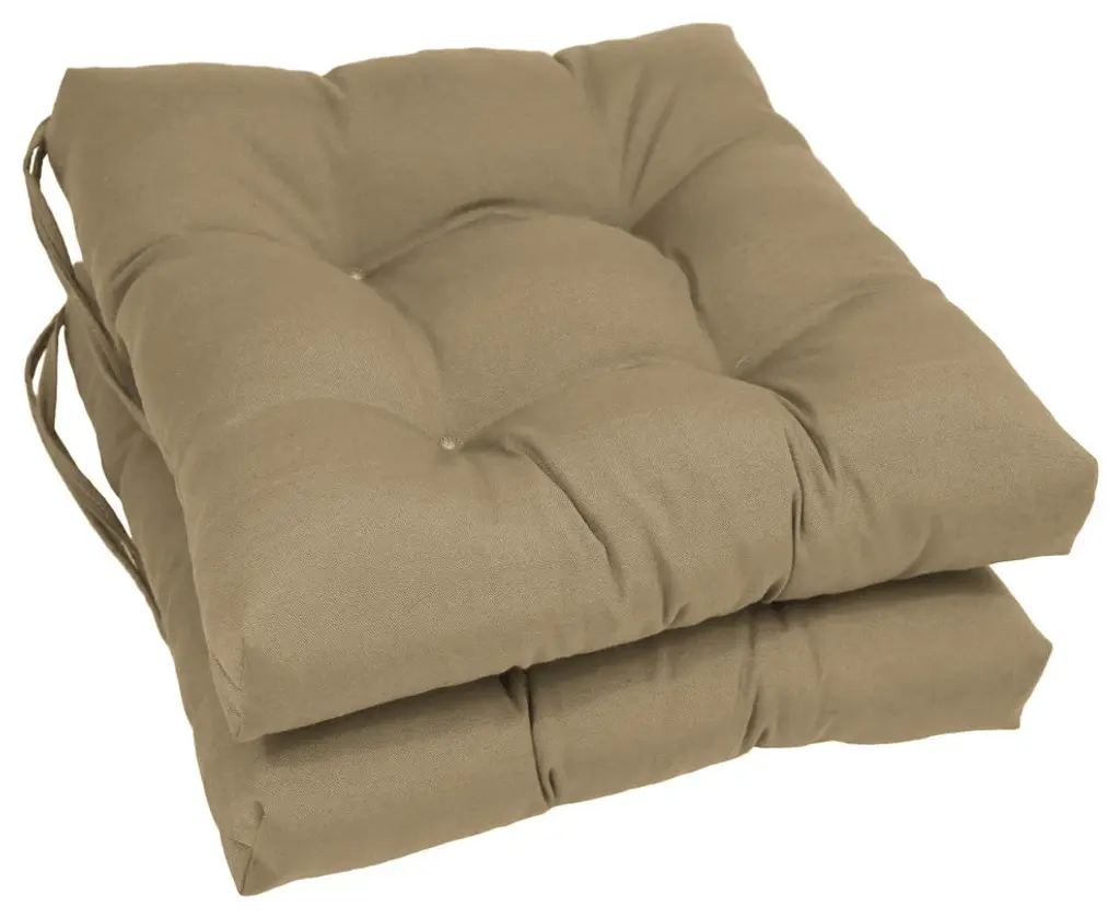 Add a splash of color and style to your home furnishings with these chair cushions. These cushions feature a classic tufted cushion design and available in a wide variety of colors of soft premium twill fabric. Includes two cushions with ties