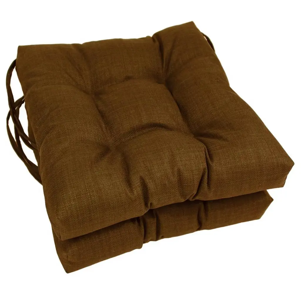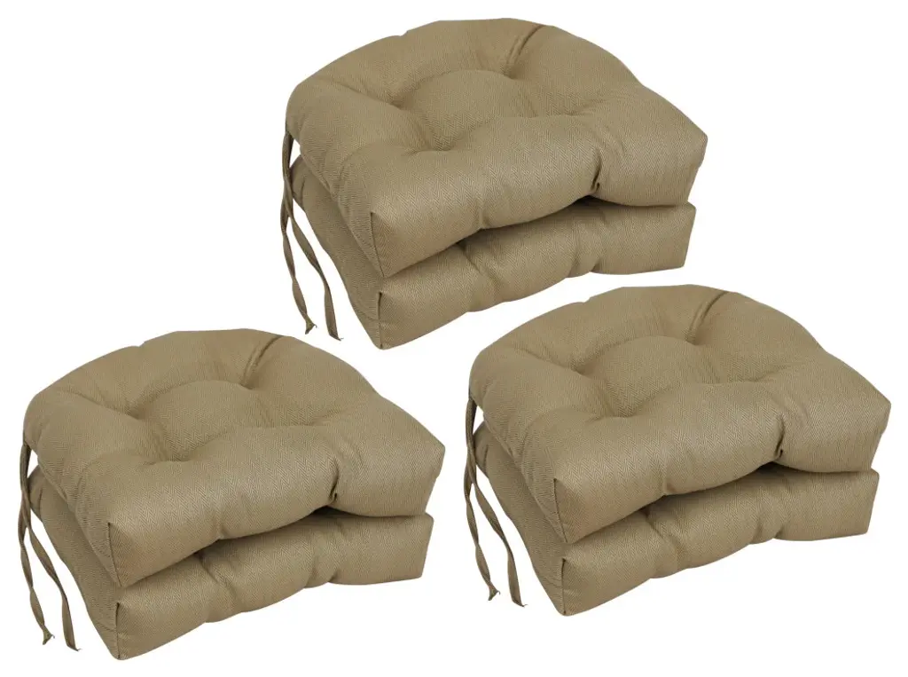 16" Solid Twill U-Shaped Tufted Chair Cushions, Set Of 2, Brown