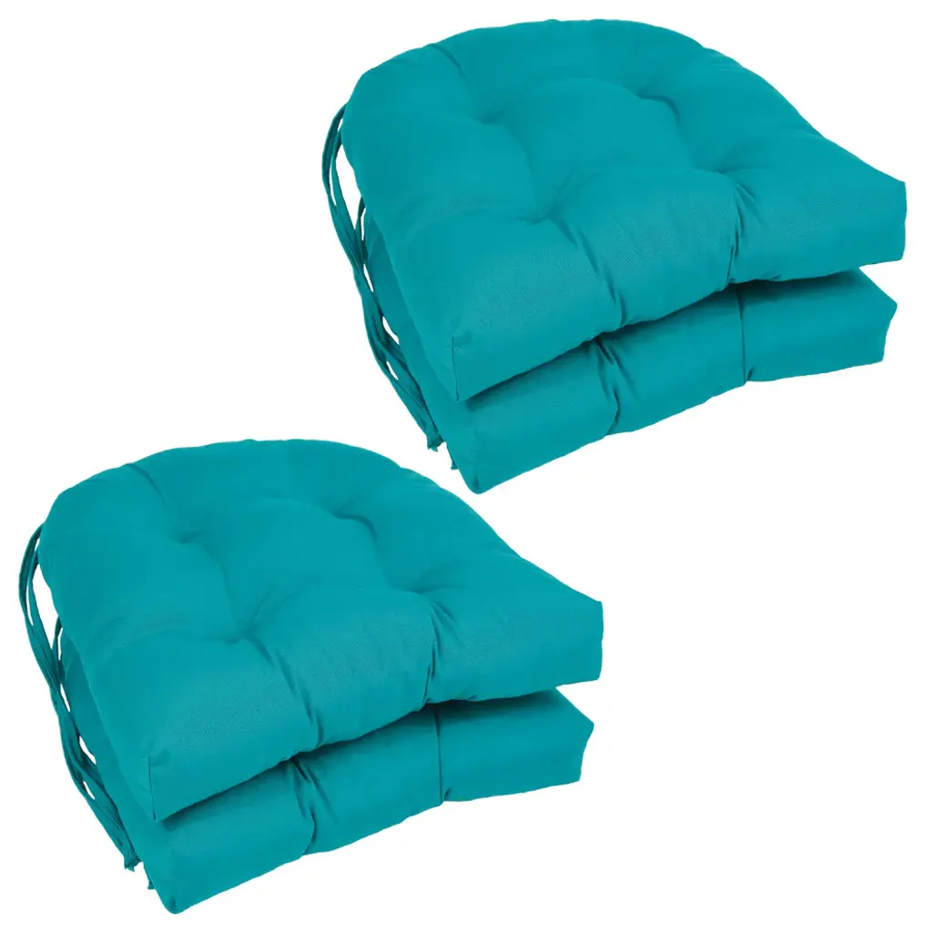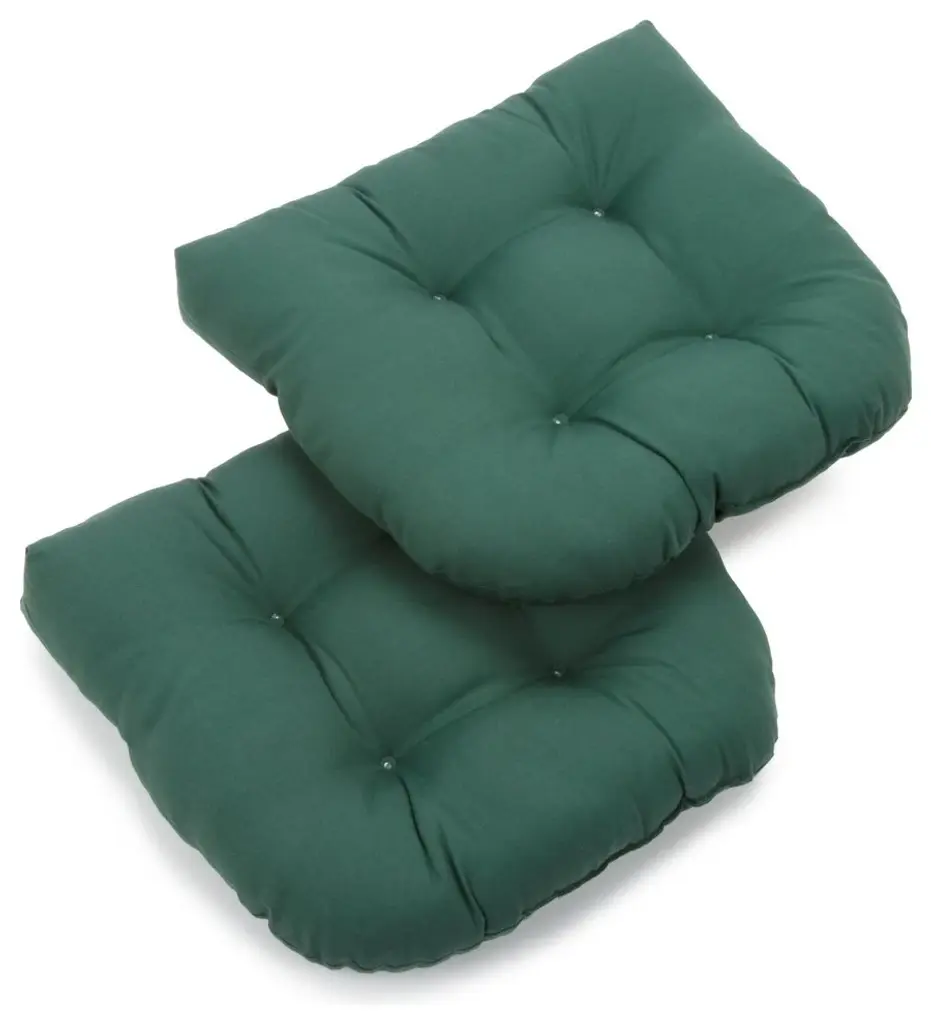 16" Solid Twill U-Shaped Tufted Chair Cushions, Set Of 2, Green