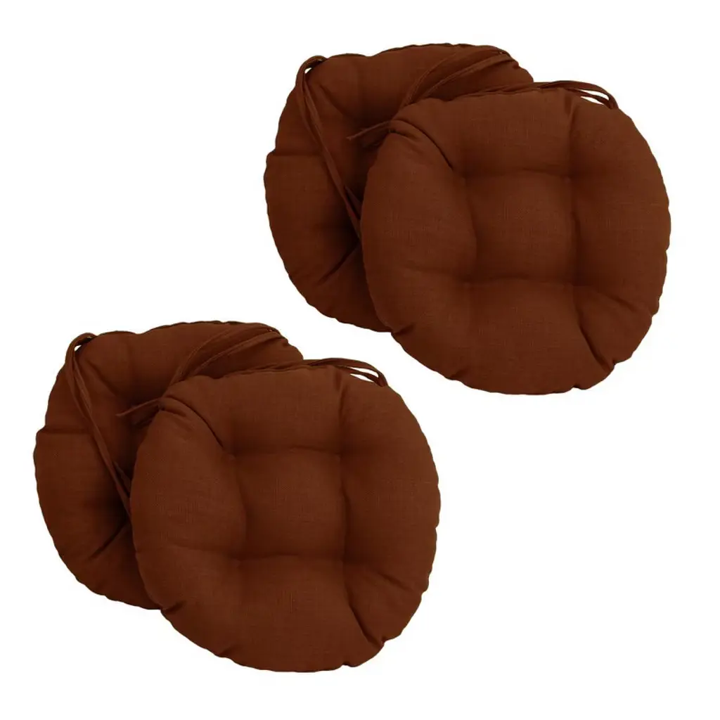 16" Spun Polyester Solid Outdoor Square Tufted Chair Cushions, Set Of 4, Mocha