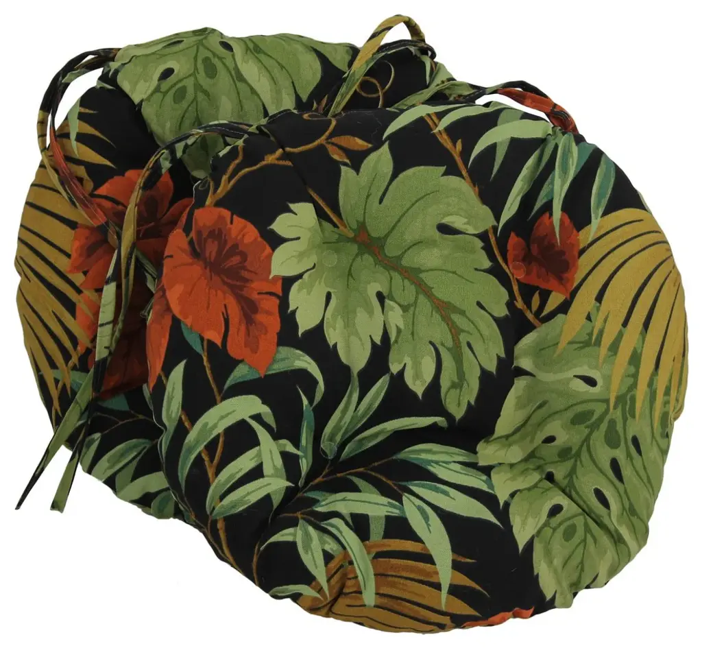 Add a splash of color and style to your home furnishings with these chair cushions. These cushions feature a classic tufted cushion design. Includes two cushions with tiesAdd a splash of color and style to your home furnishings with these chair cushionsThese cushions feature a classic tufted cushion design and available in a wide variety of colors of premium outdoor fabricIncludes two cushions with tiesProduct Materials - 100% Spun Polyester