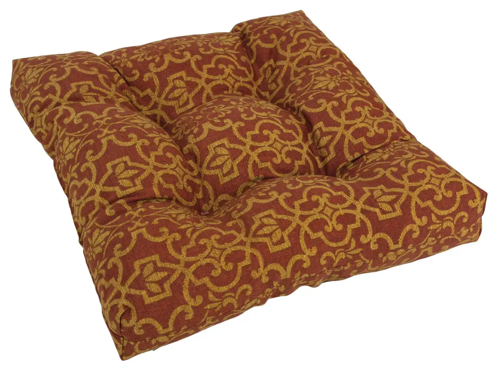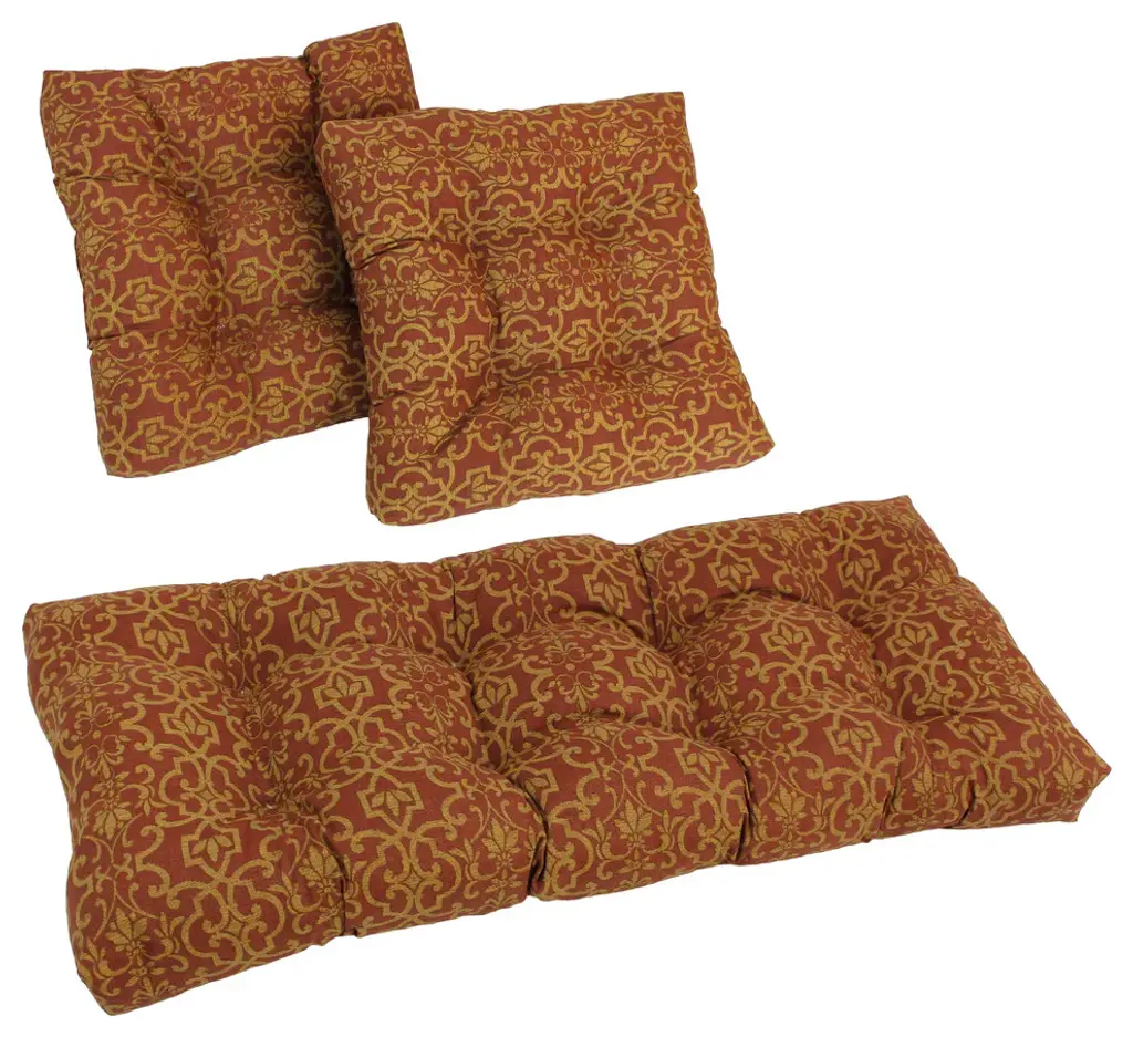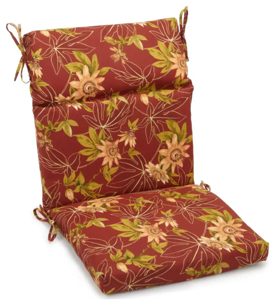 Add a splash of color and style to your patio furnishings with this seat/ back chair cushion. This cushion features a classic three-section cushion design and is available in a wide variety of striking patterns of UV and weather-resistant spun polyester outdoor fabric.
