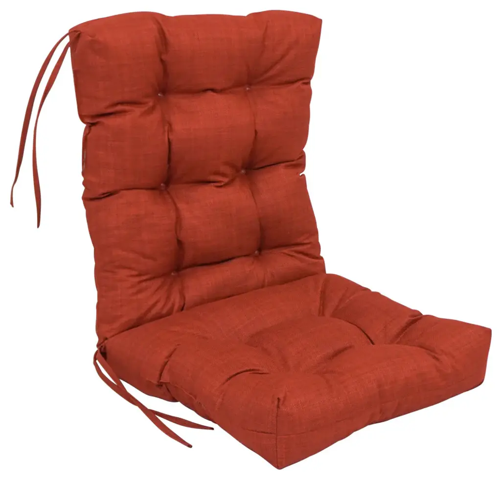 Add a splash of color and style to your patio furnishings with this seat/ back chair cushion. This cushion features a classic tufted two-section cushion design and is available in a wide variety of striking colors of UV and weather-resistant spun polyester outdoor fabric.