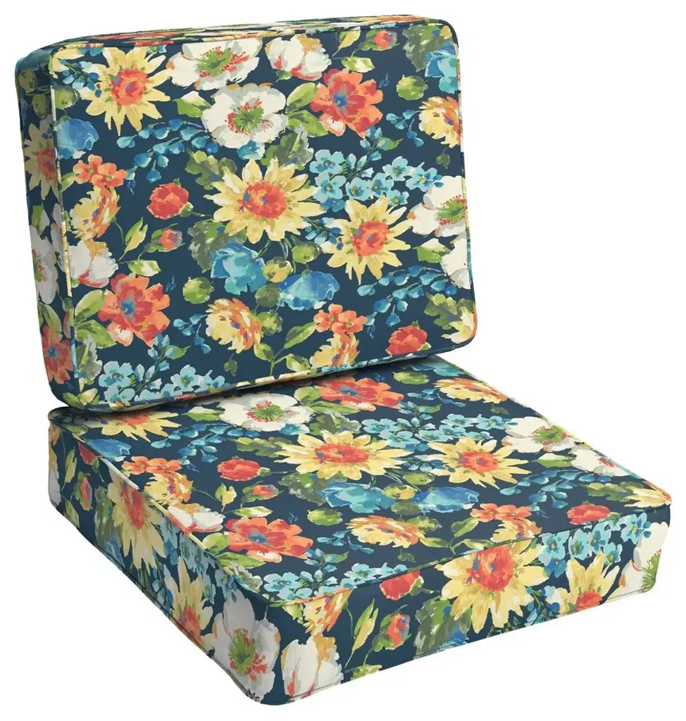 Add a splash of color and style to your home furnishings with these chair cushions. These cushions feature a classic tufted cushion design and are available in a wide variety of striking patterns of UV and weather-resistant spun polyester outdoor fabric.