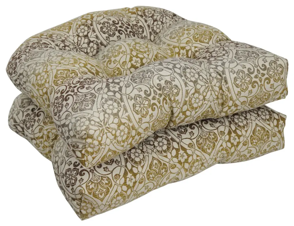 19" U-Shaped Premium Outdoor Tufted Chair Cushions, Set Of 2, Festive Mineral
