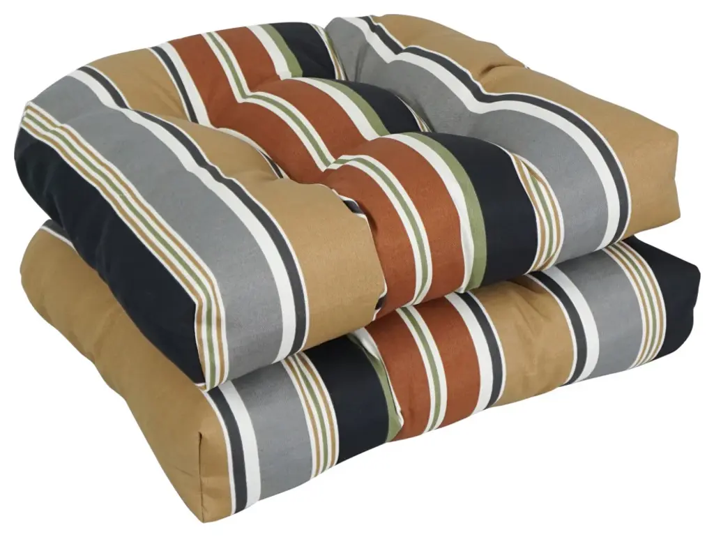 Add a splash of vibrant color and radiant style to your outdoor furnishings with these outdoor chair cushions. These cushions feature a classic chair cushion style and are available in a wide variety of striking patterns of spun polyester outdoor fabric.