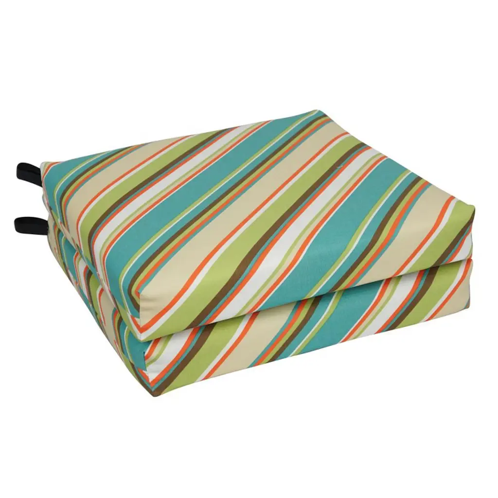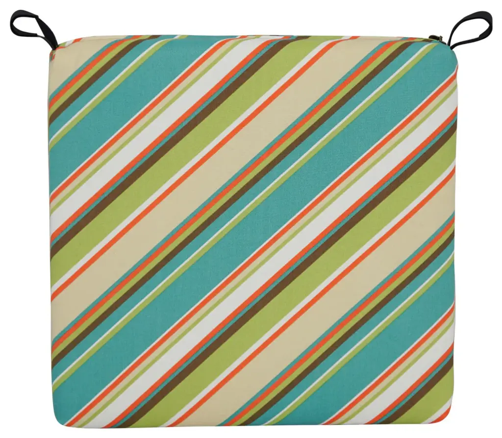 Add a splash of vibrant color and radiant style to your outdoor furnishings with these outdoor chair cushions. These cushions feature a classic chair cushion style and are available in a wide variety of striking patterns of spun polyester outdoor fabric.