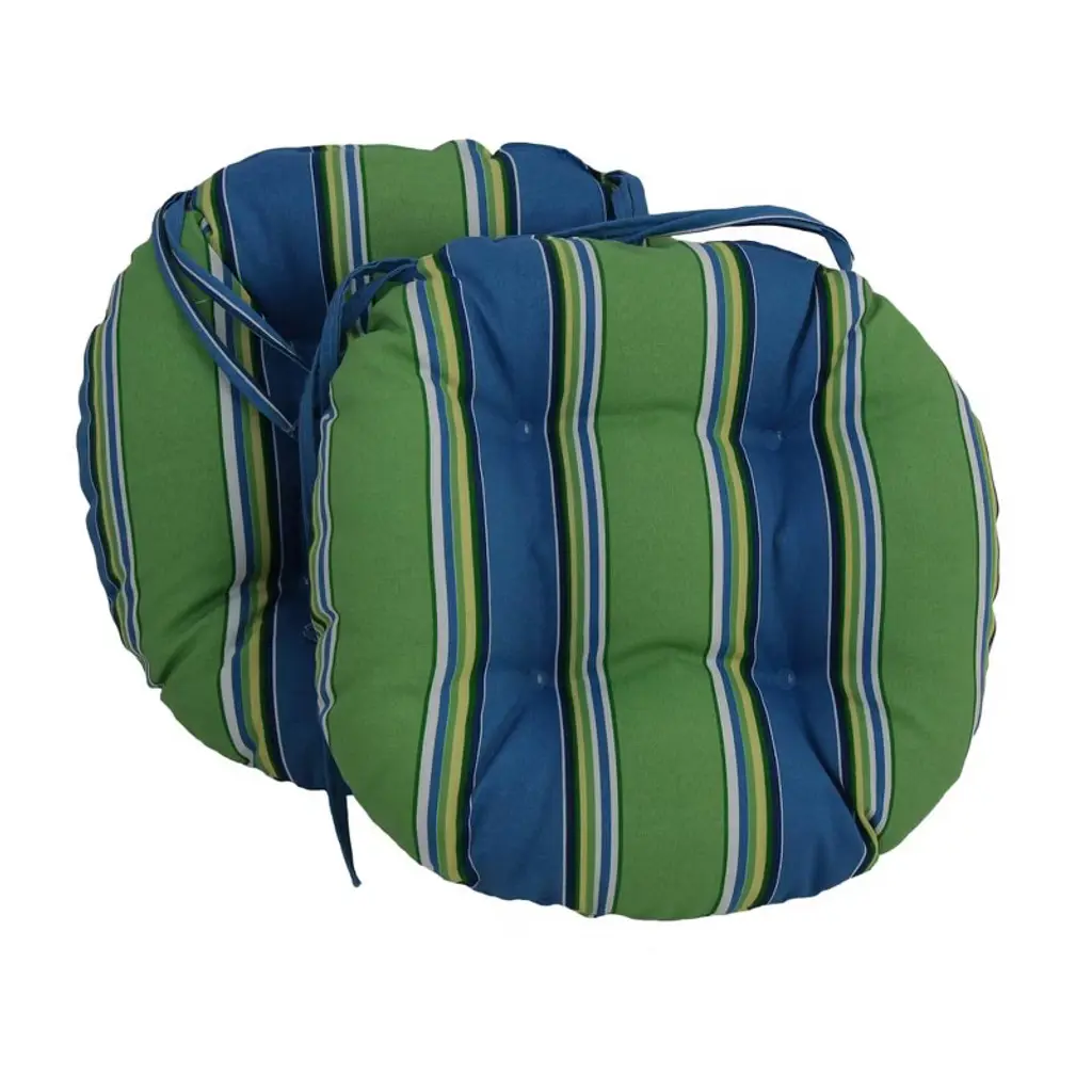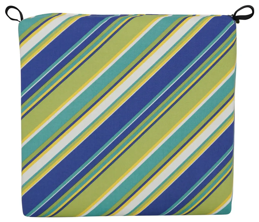 Add a splash of vibrant color and radiant style to your outdoor furnishings with these outdoor chair cushions. These cushions feature a classic chair cushion style and are available in a wide variety of striking patterns of spun polyester outdoor fabric.