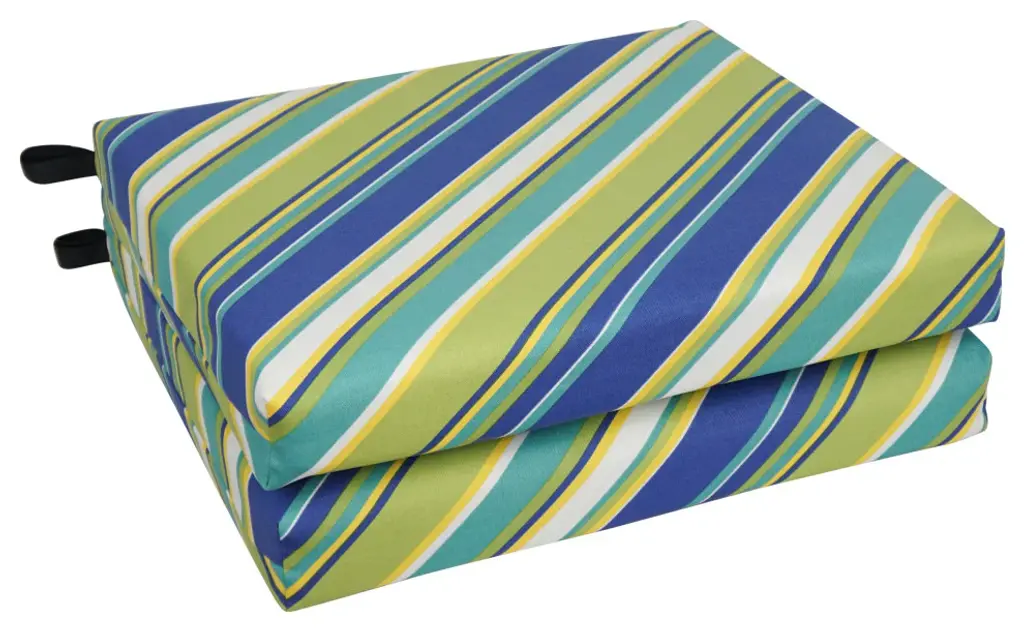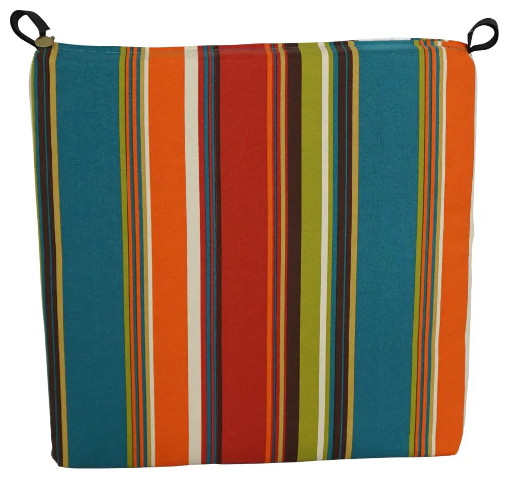 Add a splash of vibrant color and radiant style to your outdoor furnishings with these outdoor chair cushions. These cushions feature a classic chair cushion style and are available in a wide variety of striking patterns of premium spun polyester outdoor fabric.