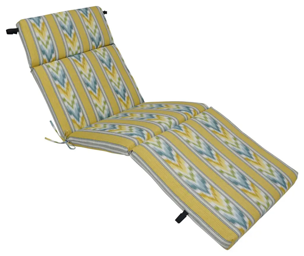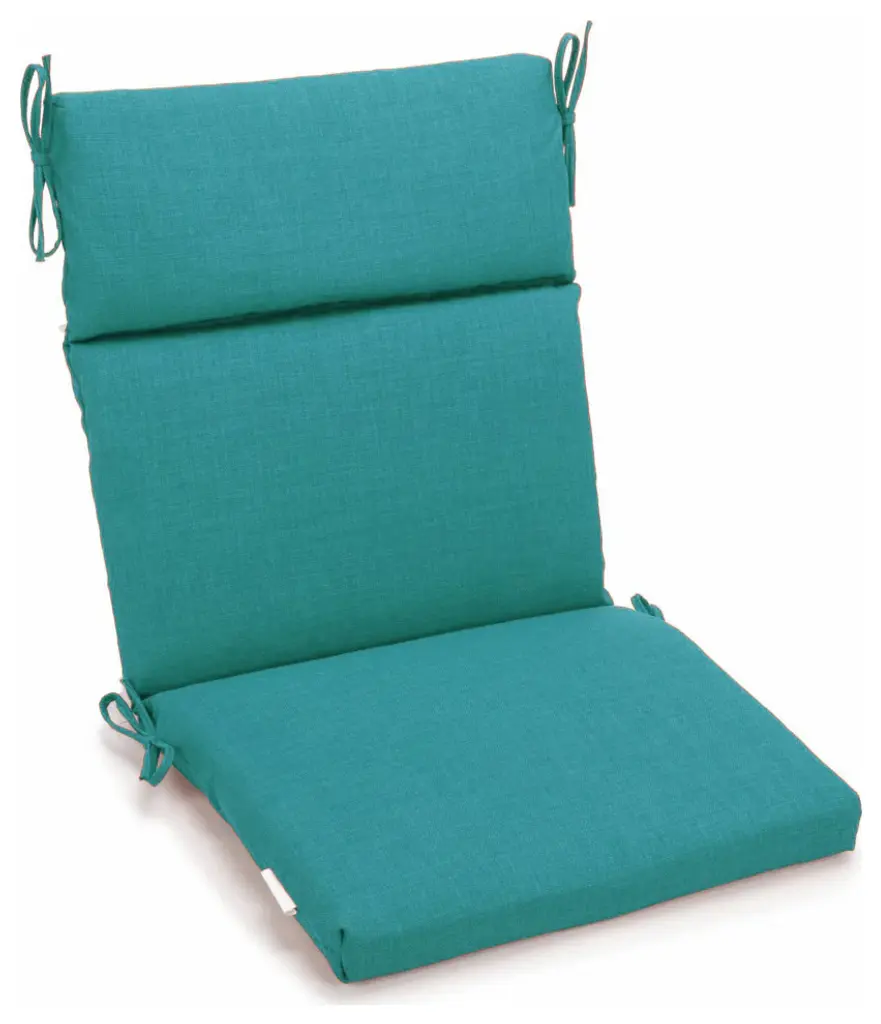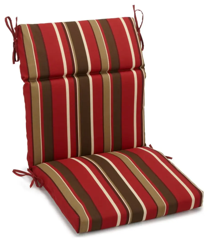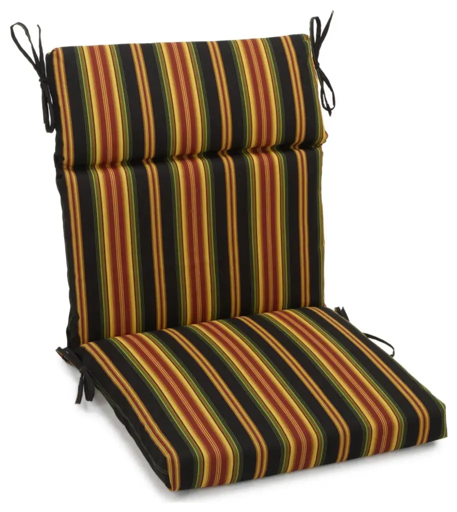 Add a splash of color and style to your patio furnishings with this seat/ back chair cushion. This cushion features a classic three-section cushion design and are available in a wide variety of striking patterns of UV and weather-resistant spun polyester outdoor fabric.