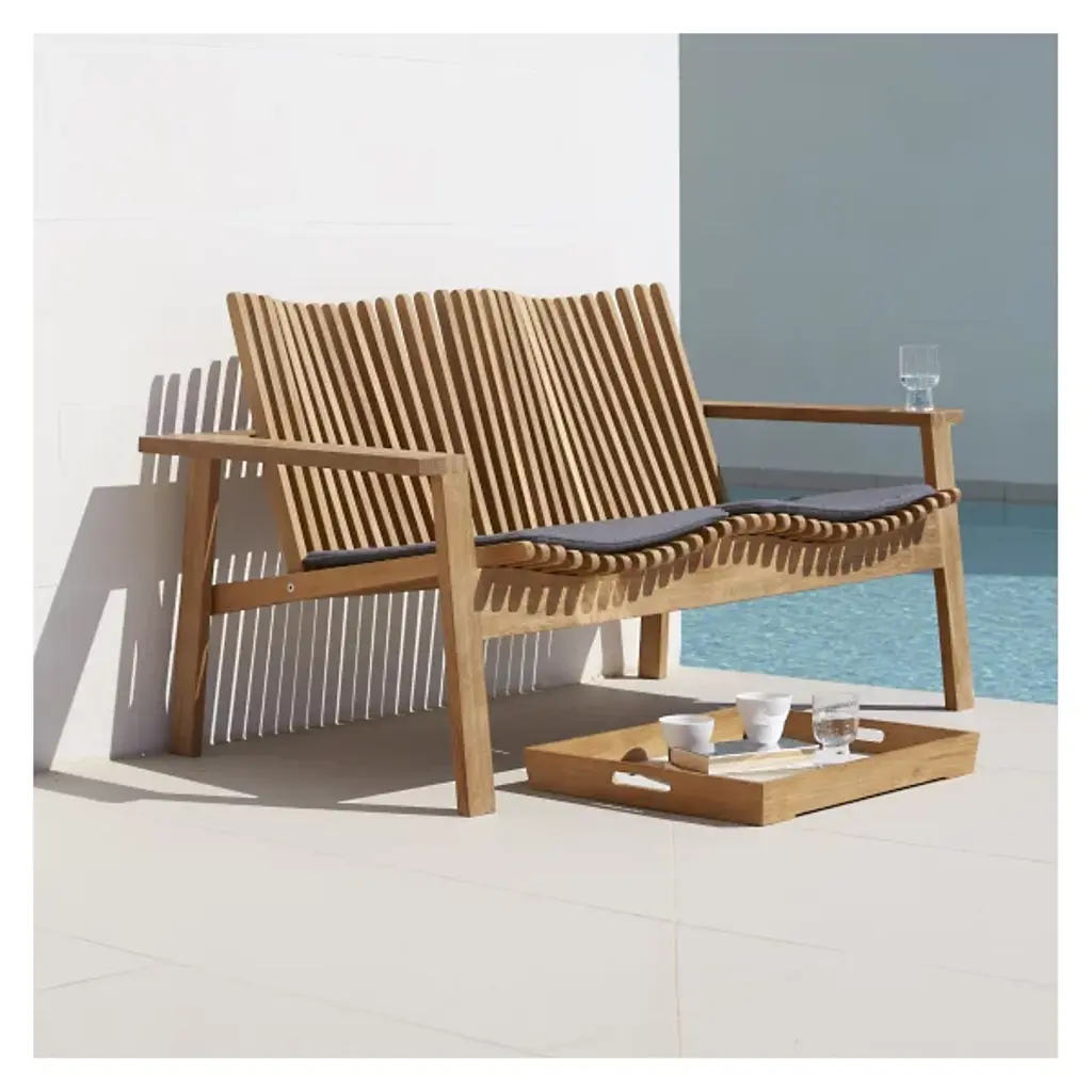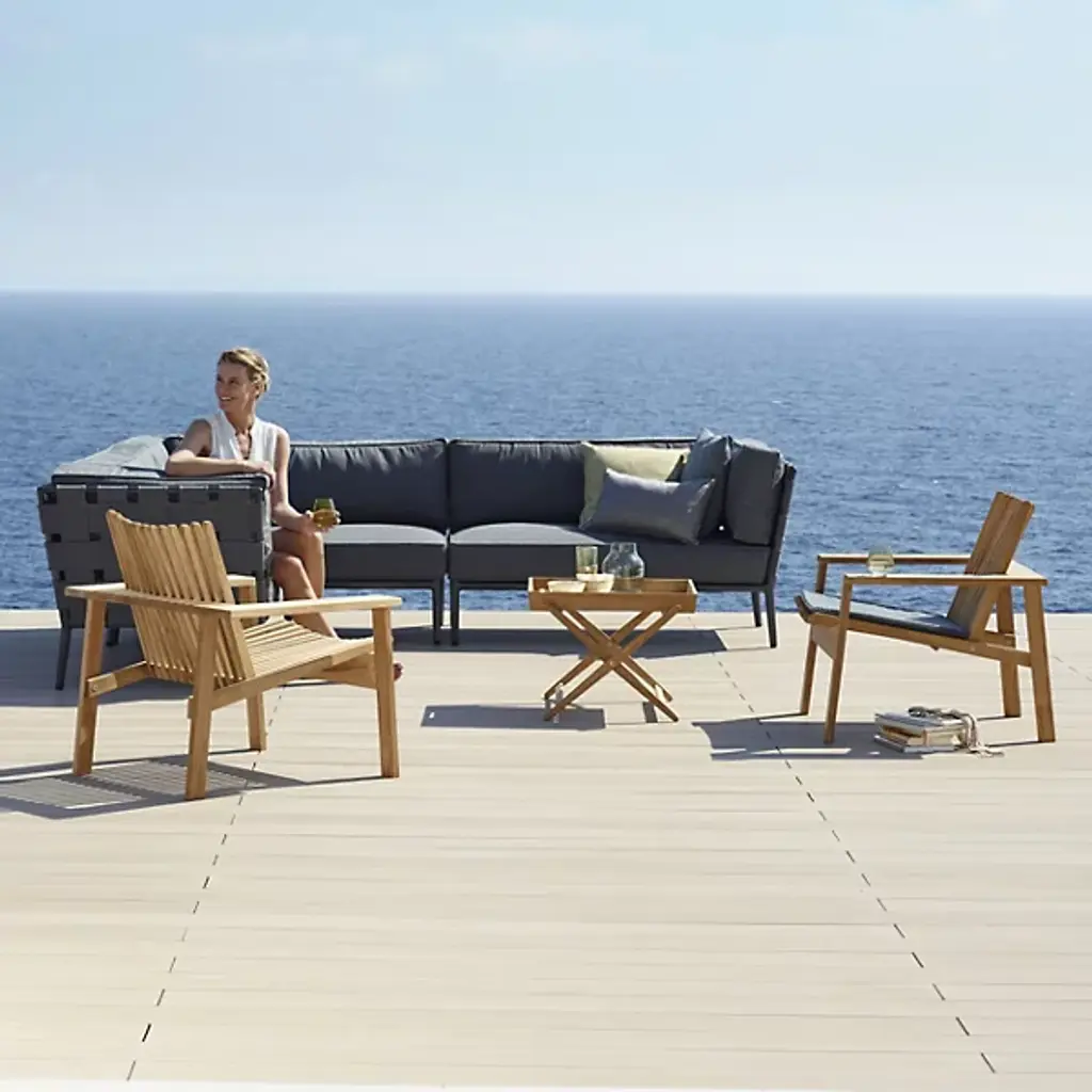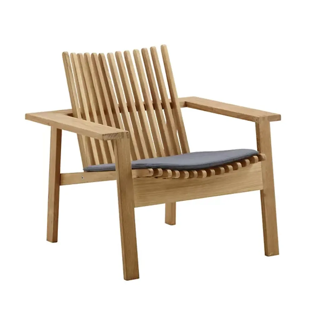 Keep your Amaze Lounge feeling amazing longer with the Cane-line Amaze Outdoor Lounge Seat Cushion. This slim seat cushion is made out of grey Sunbrella Natte fabric over weather-resistant QuickDryFoam fill. It adds to the comfort of the seat without interrupting its curvy lines, and contrasts with the warm tones of the teak.