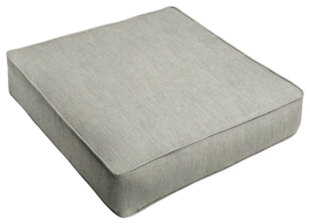 Arden Selections Oceantex is a top-of-the-line environmentally friendly outdoor cushion featuring premium recycled fabric. This olefin fabric is made from 100% recycled fishing nets retrieved from our oceans. It provides extended UV protection so your cushion can last longer and limit your environmental impact through fewer repurchases. One recovered commercial fishing net can be transformed into over 100 cushions and pillows. This nautical-inspired, fade-resistant outdoor patio seat cushion features two sets of ties to keep your cushion secure. It measures 21 in L x 21 in W x 4 in H.