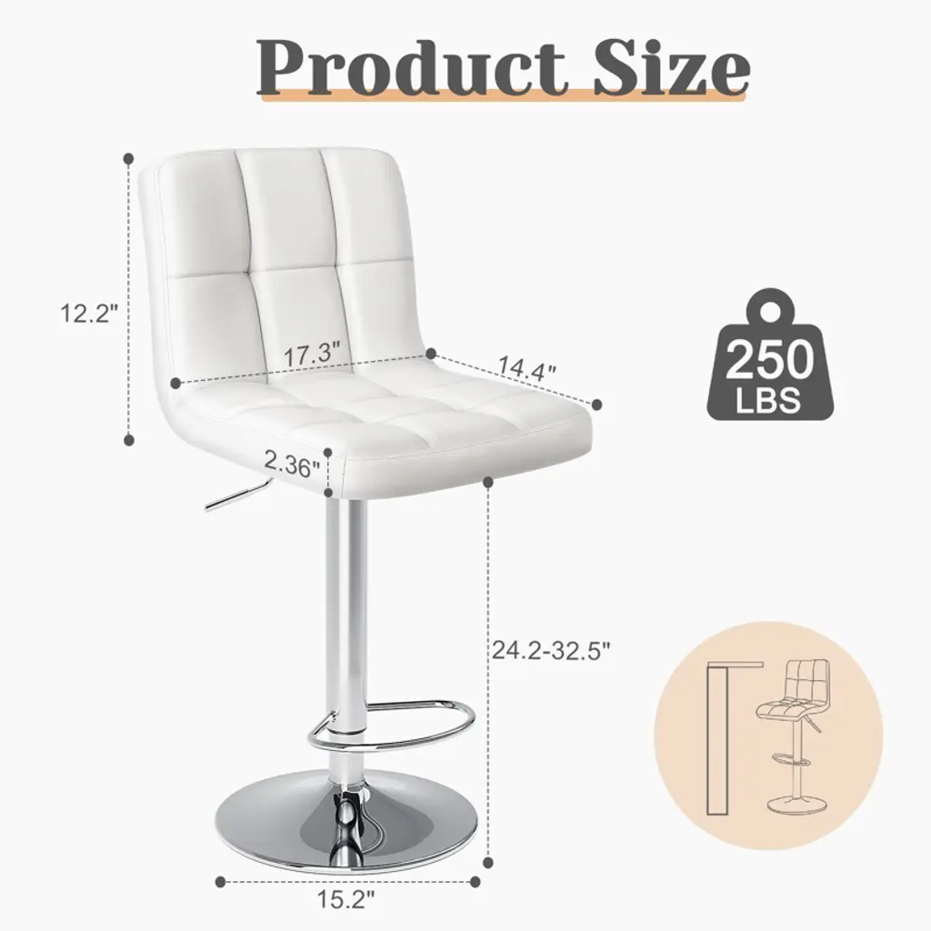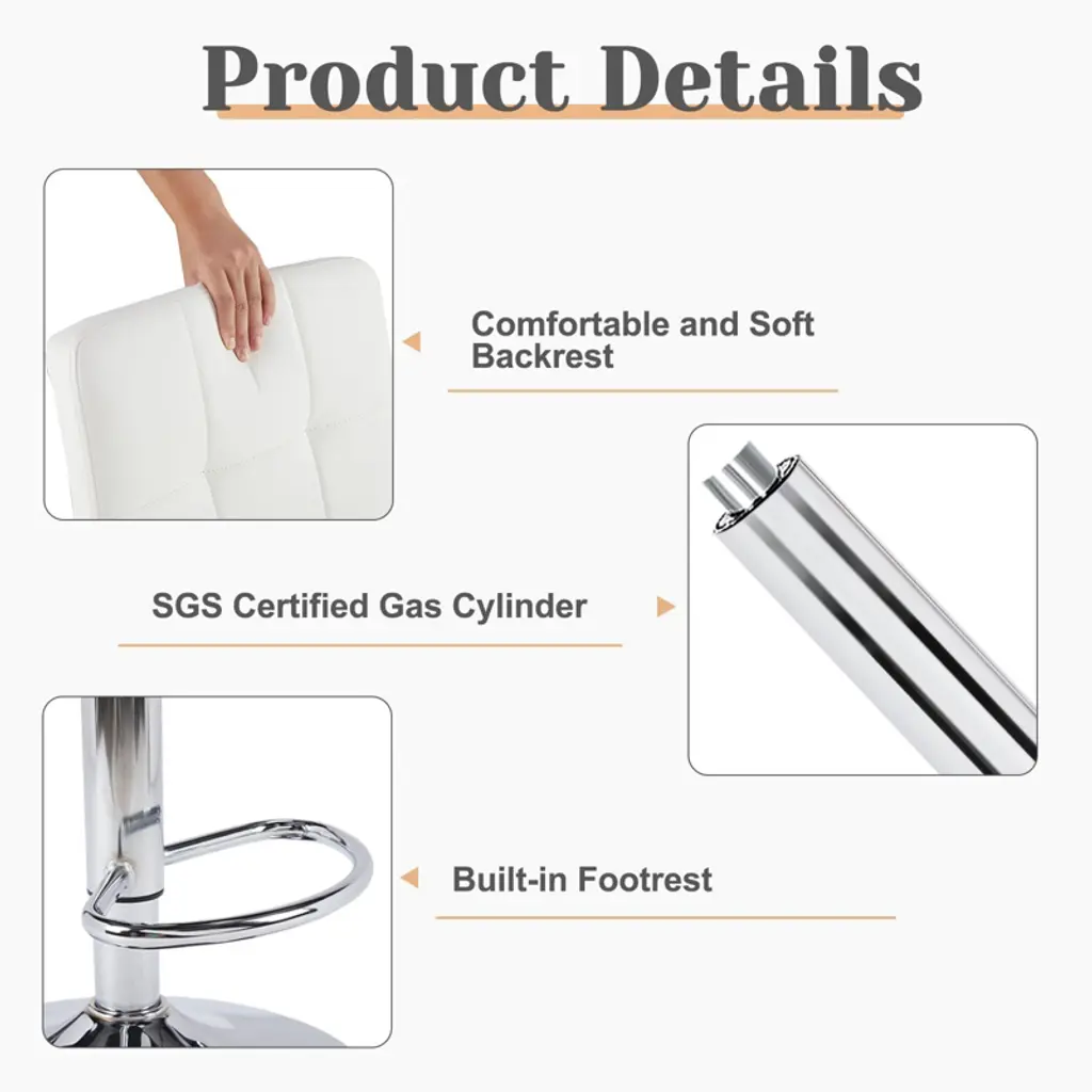 Ergonomic Pu Leather Barstools Set Of 4 - Adjustable Height, 360° Swivel And Plush Square Seat (Counter-height Dining Chairs)