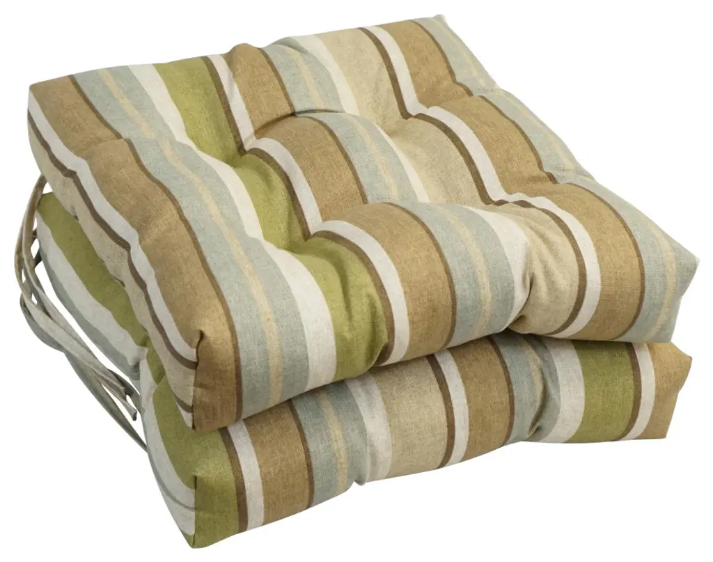 Add splash of color and style to your home furnishings with these chair cushions. These cushions feature classic tufted cushion design and available in wide variety of colors of premium spun polyester fabric. Includes six cushions with ties