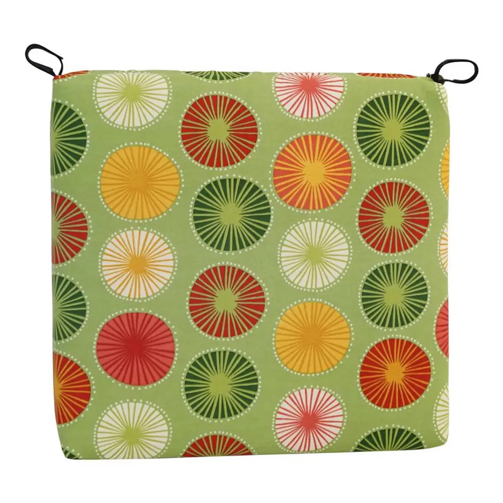 Add splash of vibrant color and radiant style to your outdoor furnishings with these outdoor chair cushions. These cushions features classic chair cushion style and is available in wide variety of striking patterns of premium spun polyester outdoor fabric. Comes in set of two.