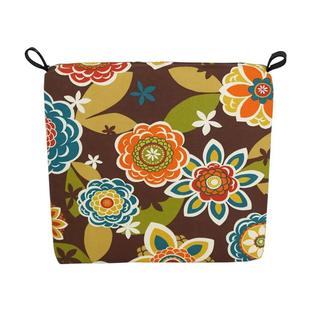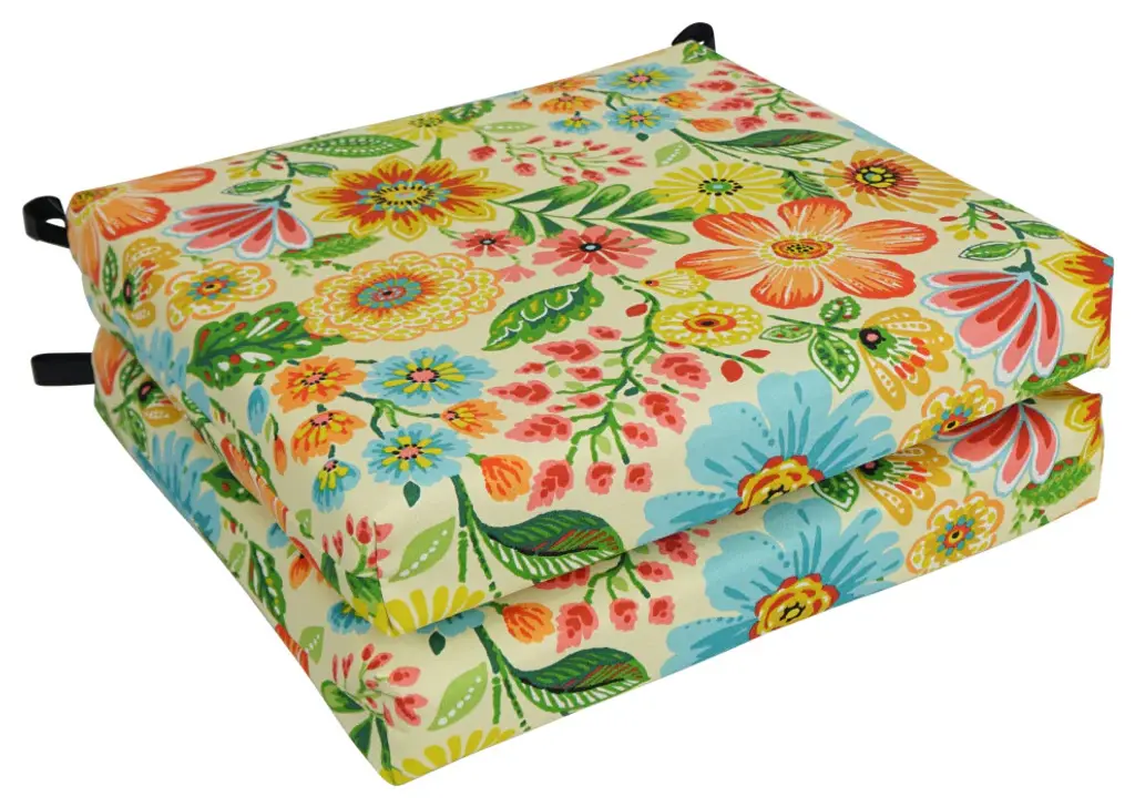 Add splash of vibrant color and radiant style to your outdoor furnishings with these outdoor chair cushions. These cushions features classic chair cushion style and is available in wide variety of striking patterns of premium spun polyester outdoor fabric. Comes in set of two.