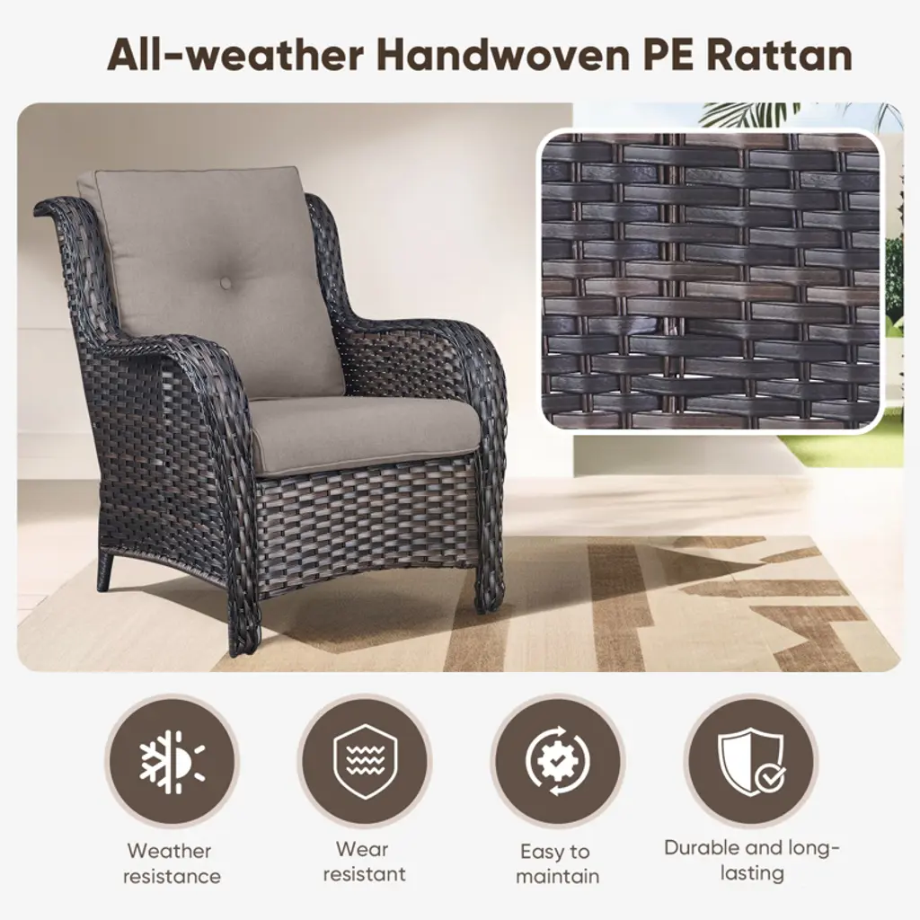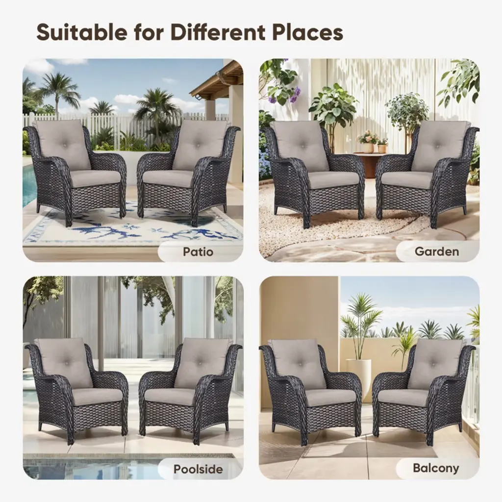 Upgrade your outdoor space with the Buenhomino 2-Piece Patio Furniture Set! These all-weather wicker chairs feature high-back support, 4-inch thick cushions, and a sturdy PE rattan & steel frame perfect for your deck, garden, or balcony. Durable, stylish, and built for comfort¡ªrelax in luxury!