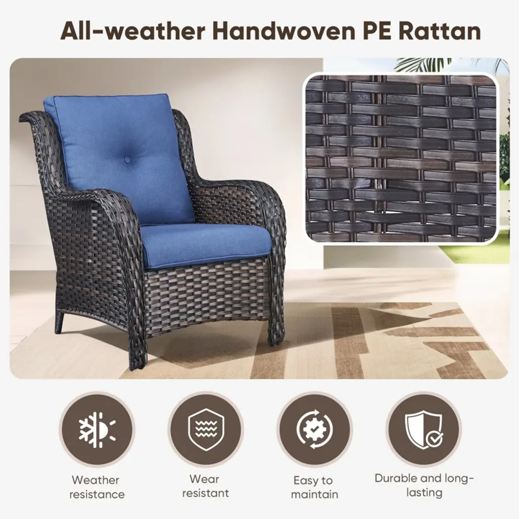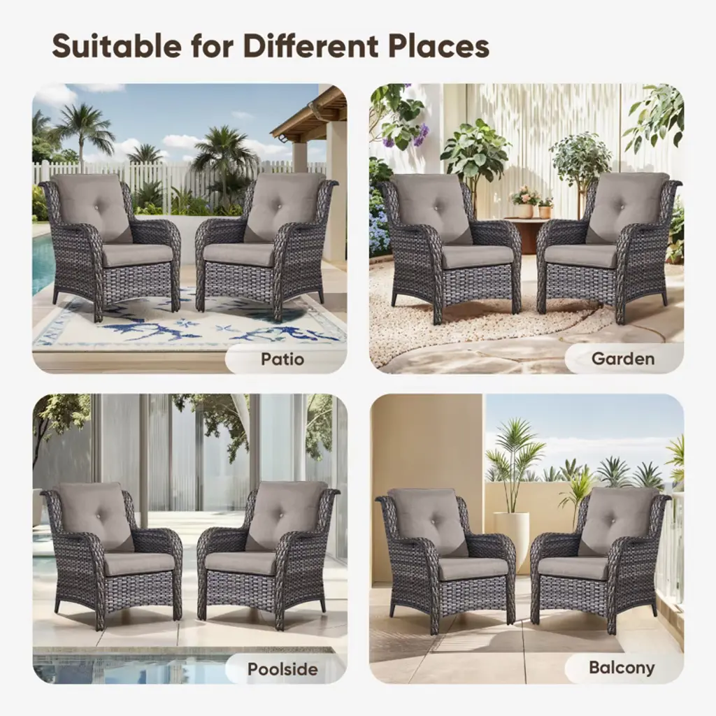Upgrade your outdoor space with the Buenhomino 2-Piece Patio Furniture Set! These all-weather wicker chairs feature high-back support, 4-inch thick cushions, and a sturdy PE rattan & steel frame perfect for your deck, garden, or balcony. Durable, stylish, and built for comfort¡ªrelax in luxury!