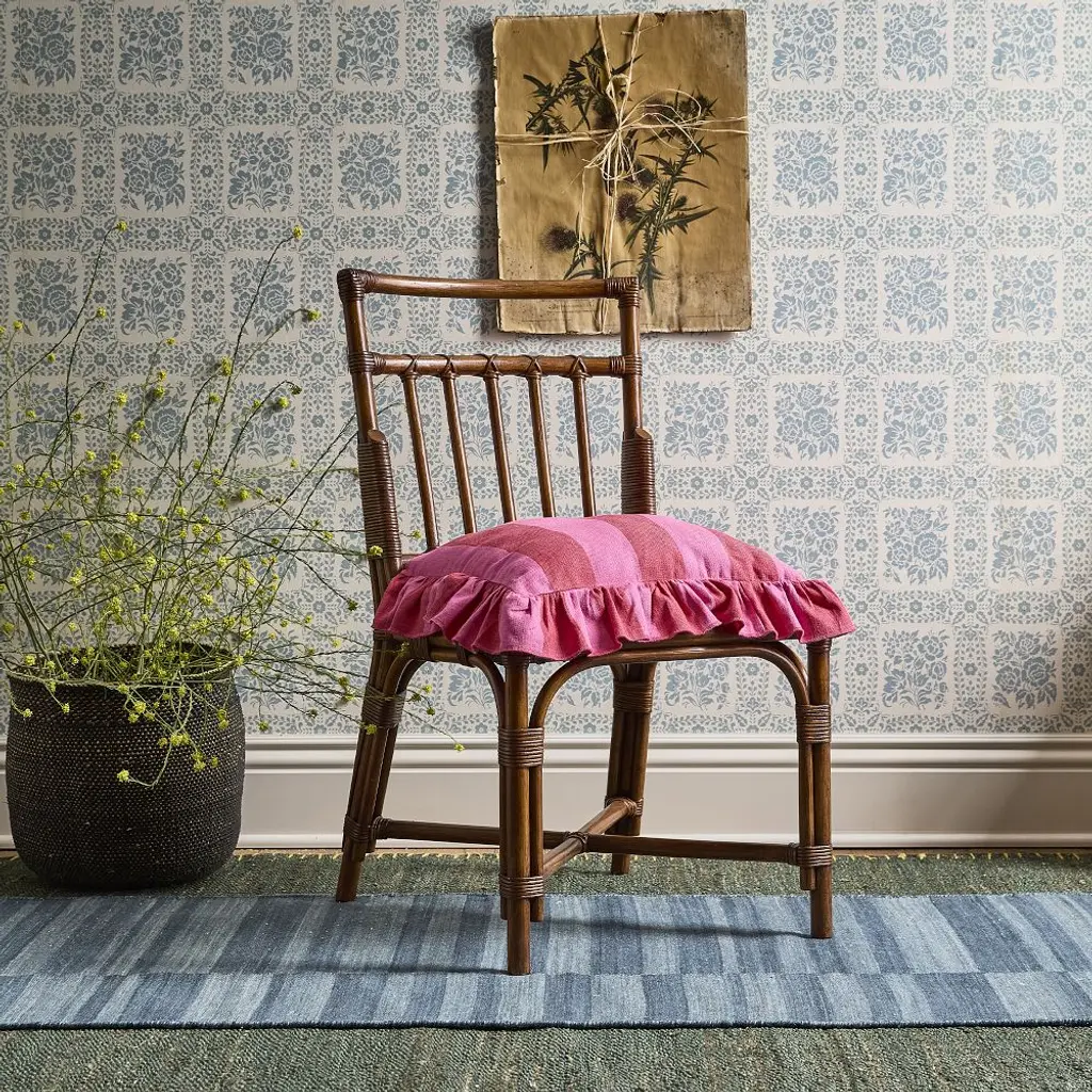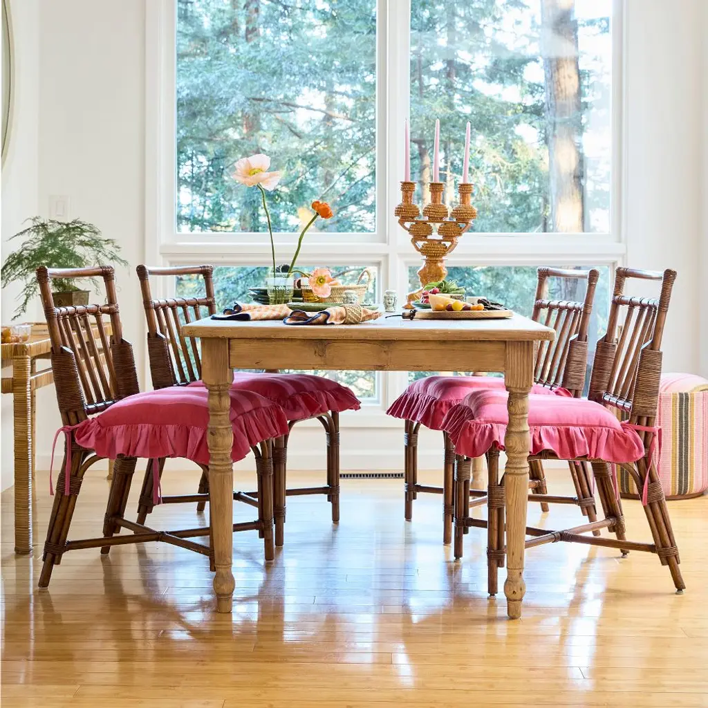Sitting pretty. With a ruffled edge for just-the-right drape, this seat cushion brings classic charm to a dining chair. OEKO-TEX® certified, with a 100% recycled poly fill for sustainable softness.