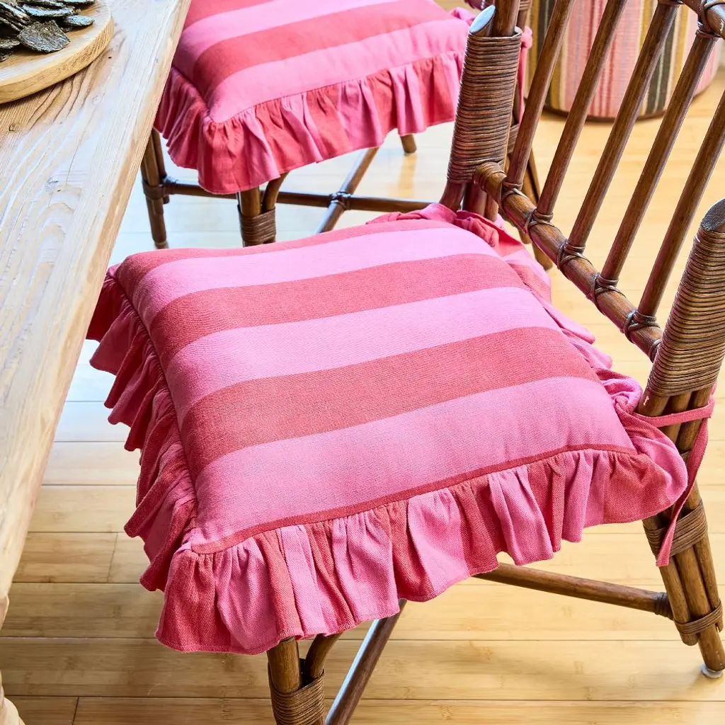 Sitting pretty. With a ruffled edge for just-the-right drape, this seat cushion brings classic charm to a dining chair. OEKO-TEX® certified, with a 100% recycled poly fill for sustainable softness.