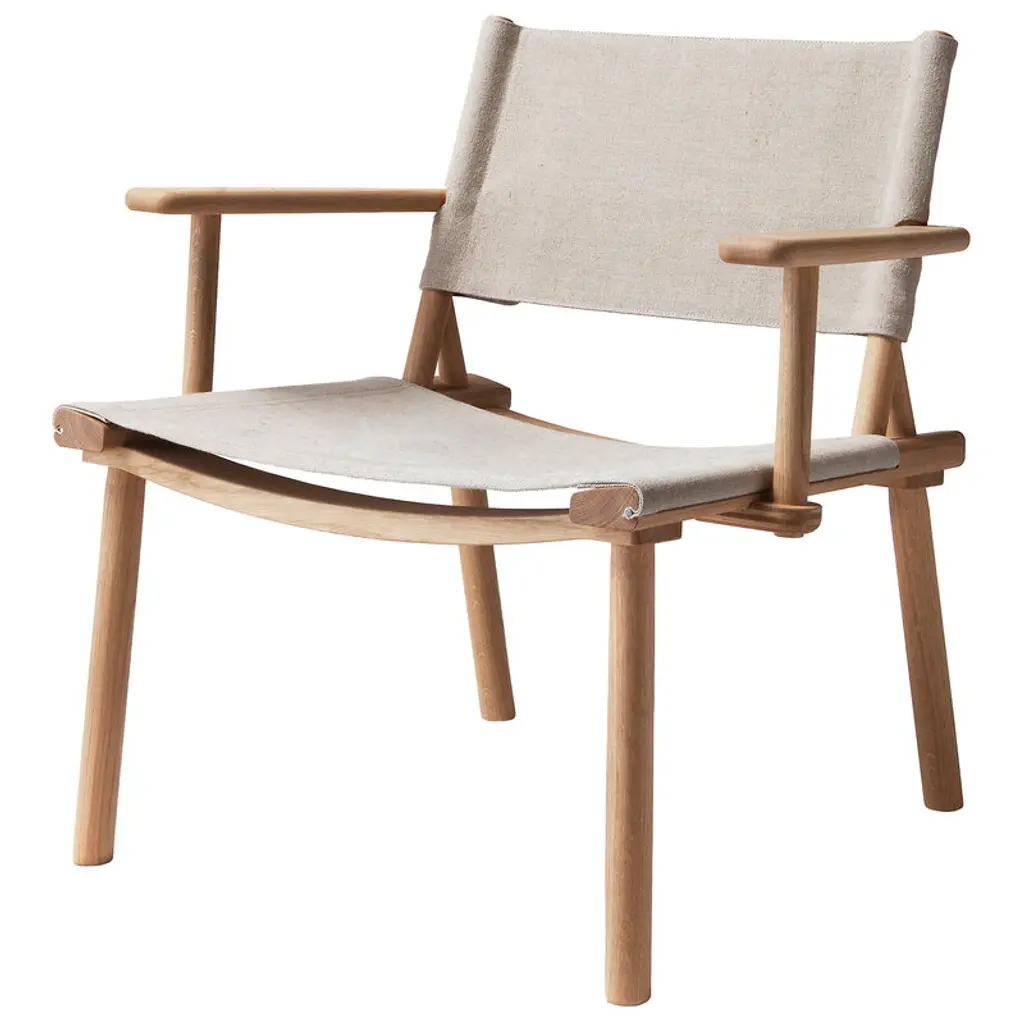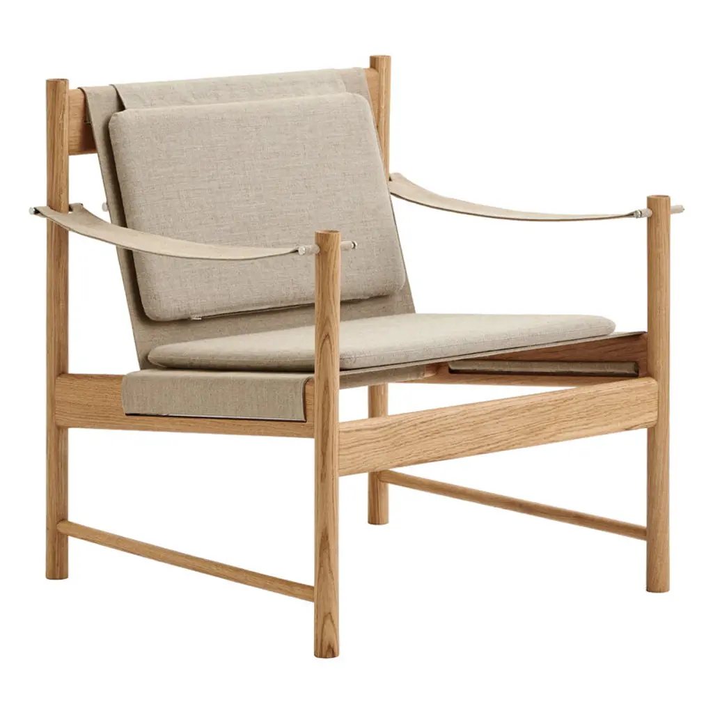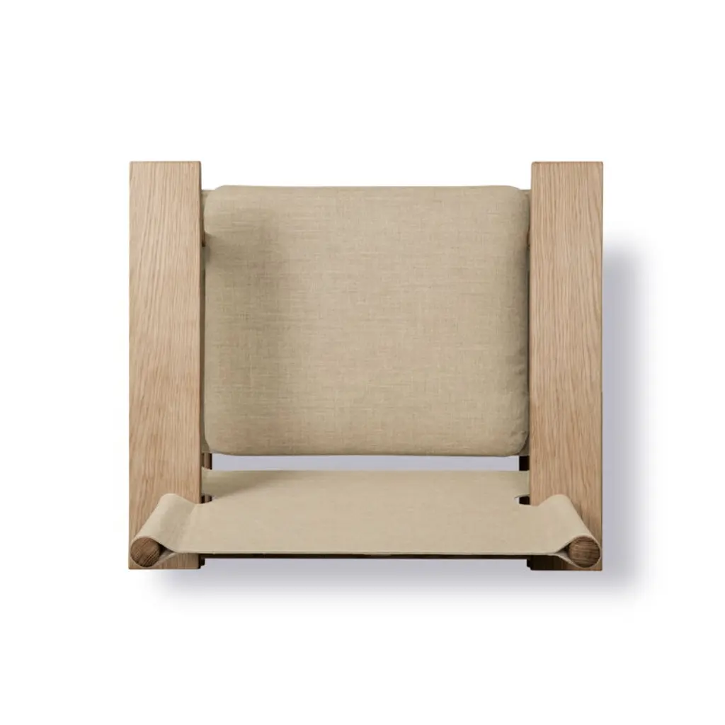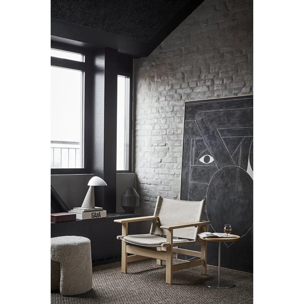 Fredericia’s Canvas chair from 1970 is one of legendary Danish designer Børge Mogensen’s final designs. He created the clear-lined, minimalist seat as a protest to colorful plastic furniture in the effort of again imbuing people’s homes with harmony and a natural feel with the help of simple shapes and high-quality materials. The Canvas chair is easy to recognize as Mogensen’s work due to the strong vertical and horizontal lines of the design. The lines also reinforce the contrast created by the flat canvas between pieces of rounded wood and the frame consisting of rectangular pieces of oak. Despite the angular silhouette, the Canvas chair is characterized by a serene expression that adapts easily to a variety of interiors.