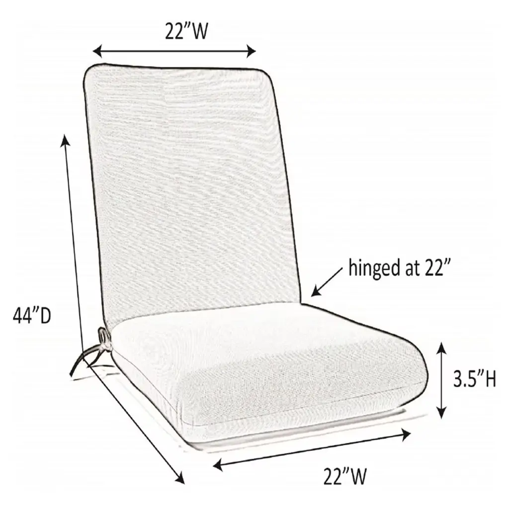 This chair cushion is constructed for comfort and durability. Made of durable Sunbrella fabric, the cushion is fade, water, weather and UV resistant. Cloth ties are located at the hinge of the cushion.
