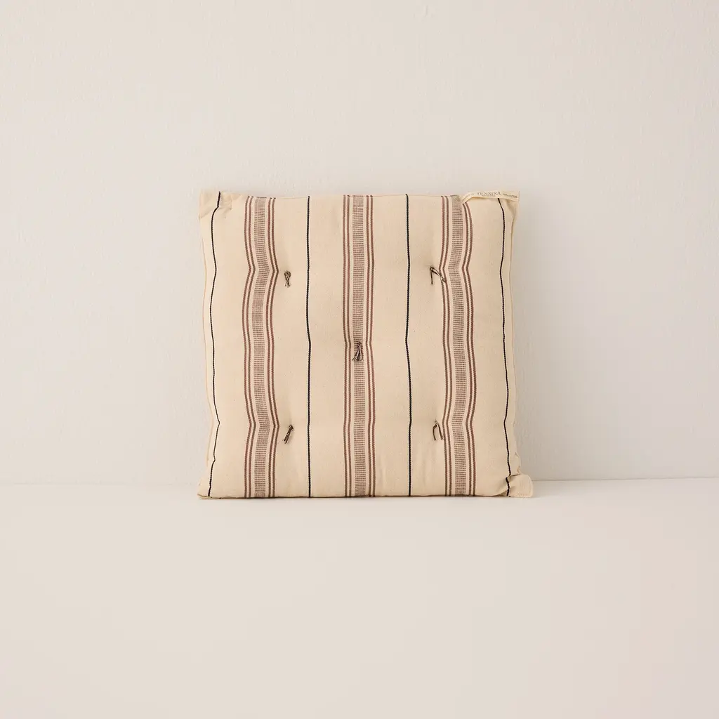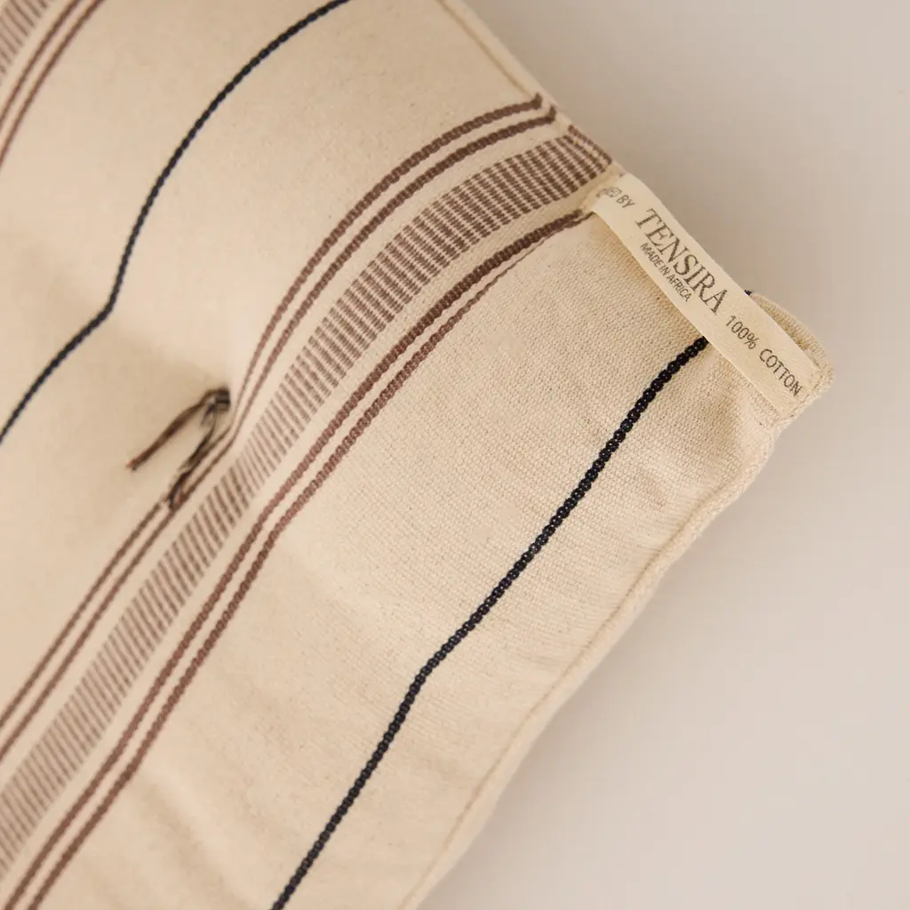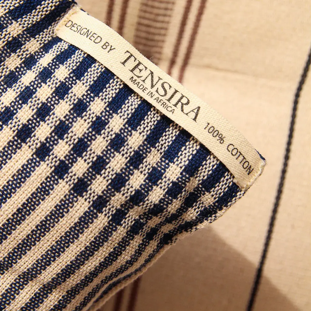 Looking to add comfort to your seats while dressing up your space? This artisan-crafted chair cushion by Tensira will make them an even better place to sit and add sophistication to any setting. The beautiful (non-removable) cotton cover is woven and dyed by hand in Guinea and filled with locally-sourced kapok, a fluffy natural fiber that comes from the fruit of the Kapok tree. If you love silky soft cushions that are sustainable and ethically made, you'll settle for nothing else.All Tensira products are hand-crafted, therefore each piece is unique. Small irregularities or variations in color are part of the beauty of an entirely hand-made product.
