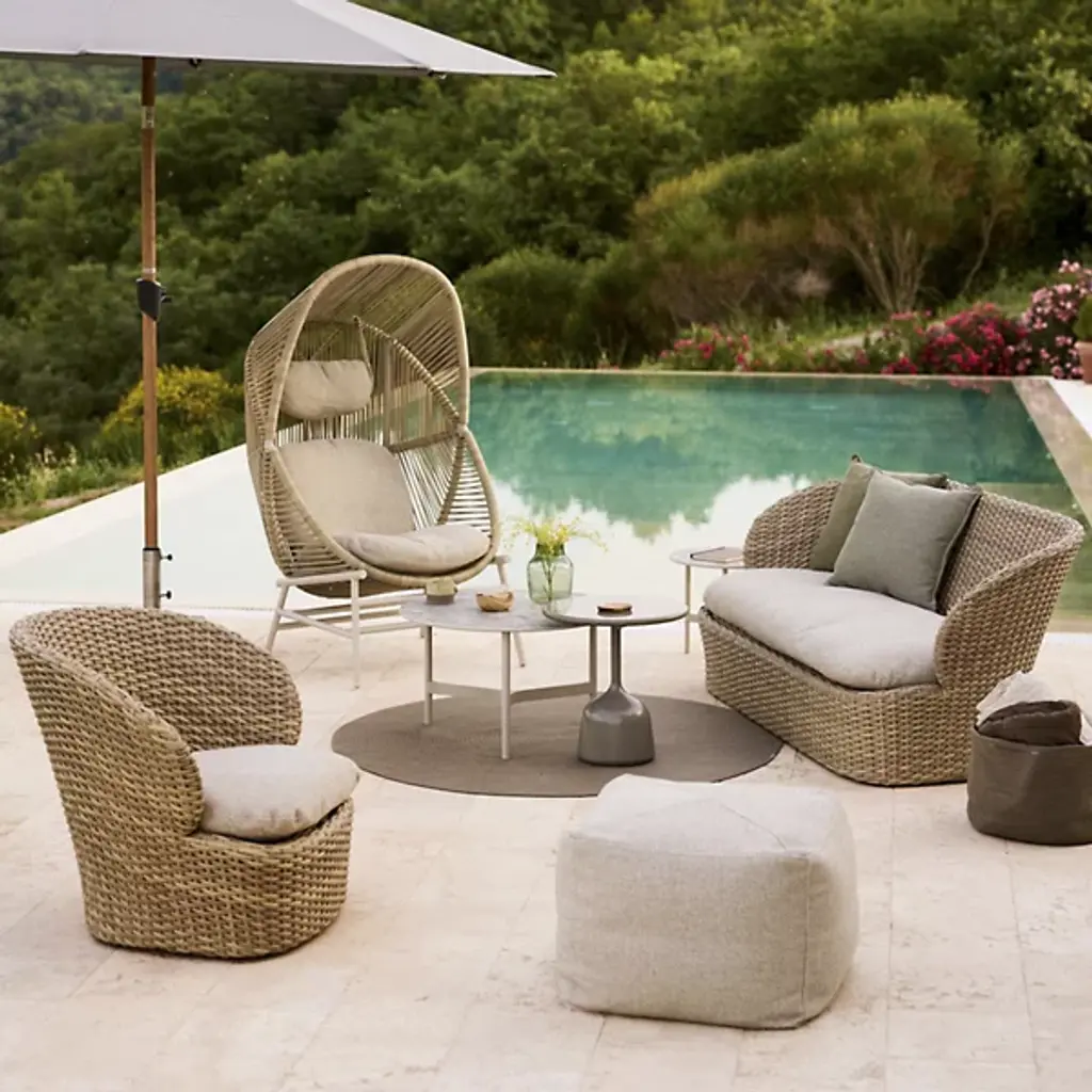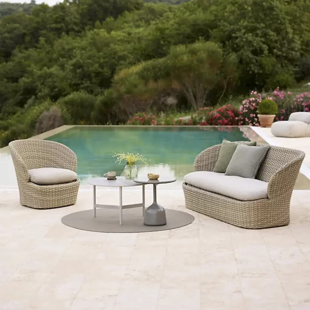 The Coast Outdoor 2,5-Seater Sofa Seat Cushion from Cane-line converts the Coast sofa frame into a fully comfortable seating experience through its custom-fitted fabric construction. This cushion incorporates QuickDry and Airflow technology, promoting rapid moisture evaporation, typically achieving complete dryness within one hour after rainfall. The cushion's shape conforms precisely to the sofa's curved profile, providing consistent support across the entire seating surface. Its securing system prevents shifting during use while allowing easy removal for seasonal storage or cleaning.