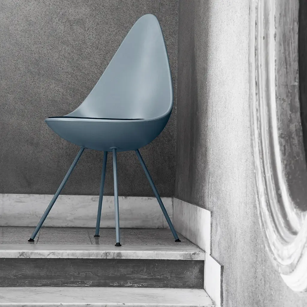 The Drop chair draws inspiration from the feeling of an embrace, but it has also been designed for freedom of movement; creating a unique sense of comfort. Designed by Arne Jacobsen, it was originally created for the SAS Royal Hotel in Copenhagen before being relaunched in 2014. It is said to be Jacobsen's favourite chair among his many designs. The seat cushion comes in fabric in different colours and fits the Arne Jacobsens Drop chair in plastic perfectly.
