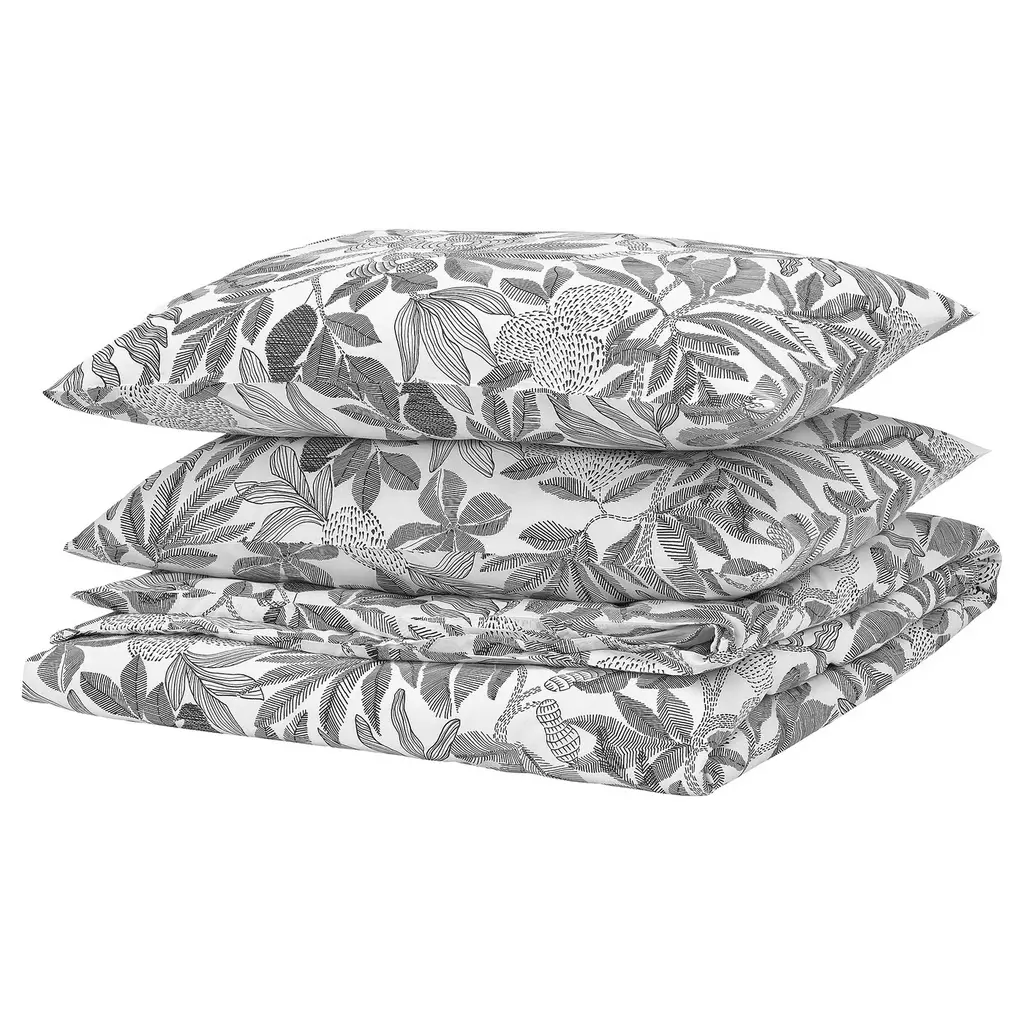 DVÄRGDUNÖRT Chair pad - gray/white 17/14x17x1 5/8 ". The 4-sided skirt makes your chair look more dressed up from all angles. The traditional floral pattern adds a decorative feel to the room. The pad offers 4 cm of cushioned comfort. Large fasteners keep the chair pad neatly in place.
