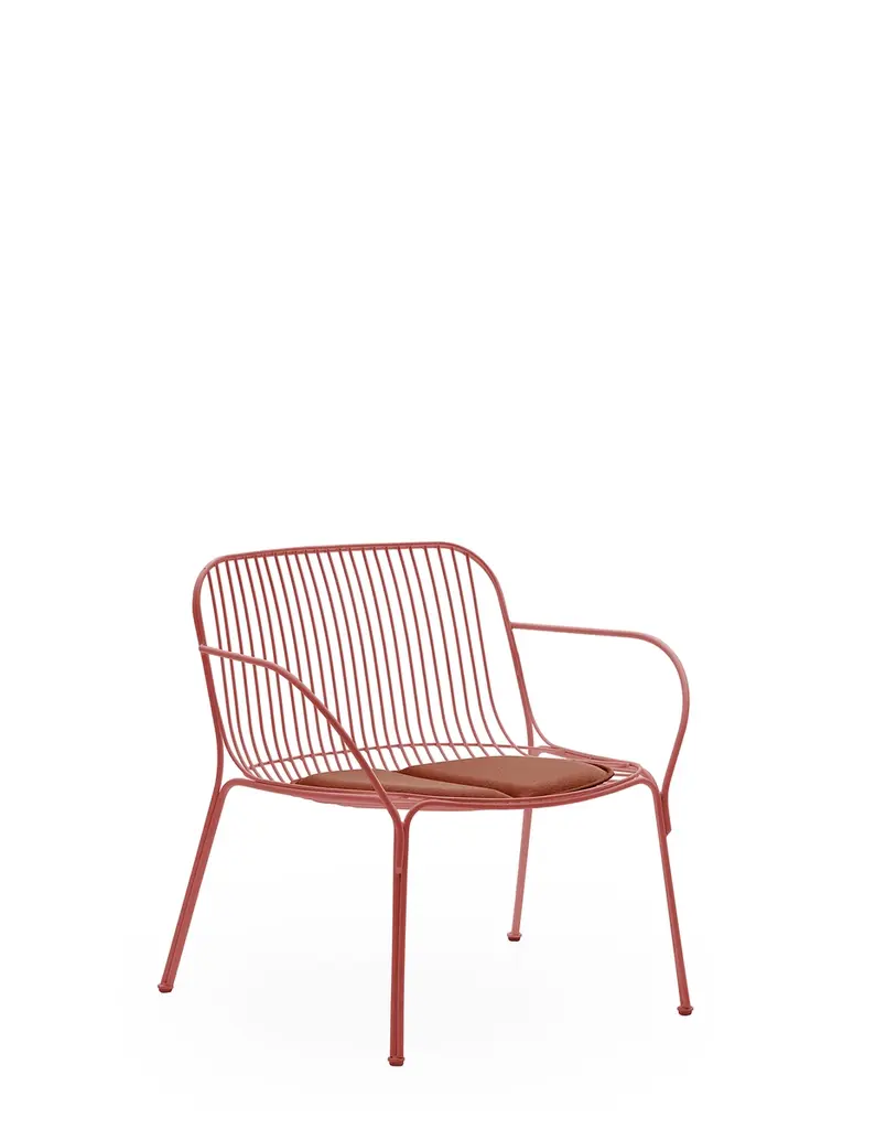 HIRAY takes metal, one of the most important materials for the greening of the Kartell catalogue, and uses the welded wire process to shape it. The result is an essential and functional product that is nevertheless rich in emotion. Metal wires form well-defined yet lightweight structural parts of the collection’s chair, chair with arms, bistro table, armchair, divan and side table. The various articles come in white, Bordeaux, black and green.