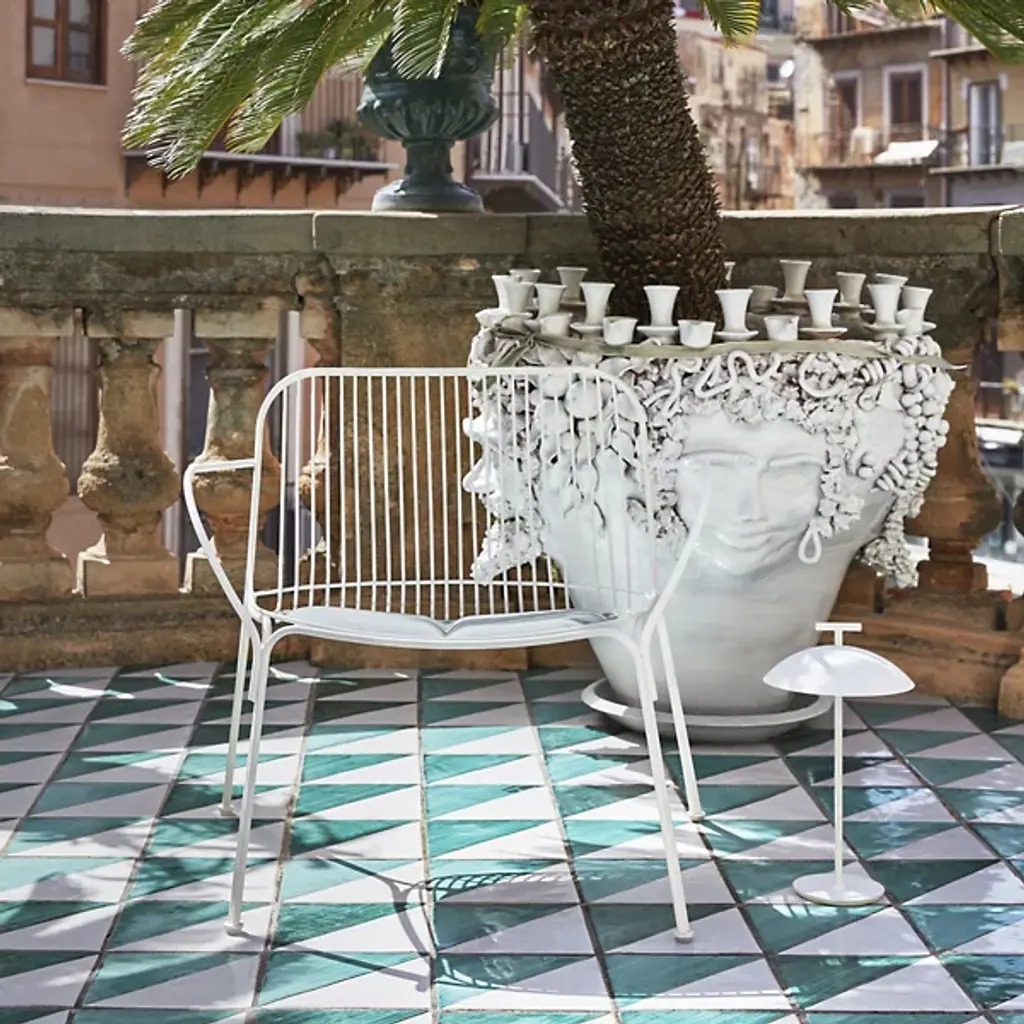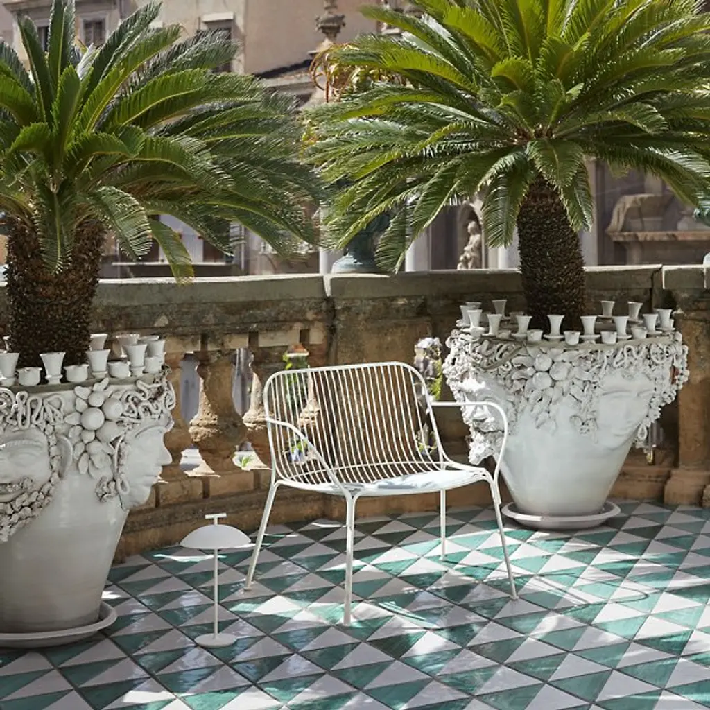 Enter a state of relaxation with the Hiray Outdoor Armchair Cushion from Kartell. This cushion is designed by Ludovica + Roberto Palomba. The Hiray Outdoor Armchair Cushion is water-repellant and is filled with comfortable heat-formed polyurethane. Your accessory is sustainably made and is composed of fabric made from recycled bottles and other PET waste. You need not worry about slipping while seated as the Hiray Outdoor Armchair Cushion features a rubberlike non-slip coating on its underside.