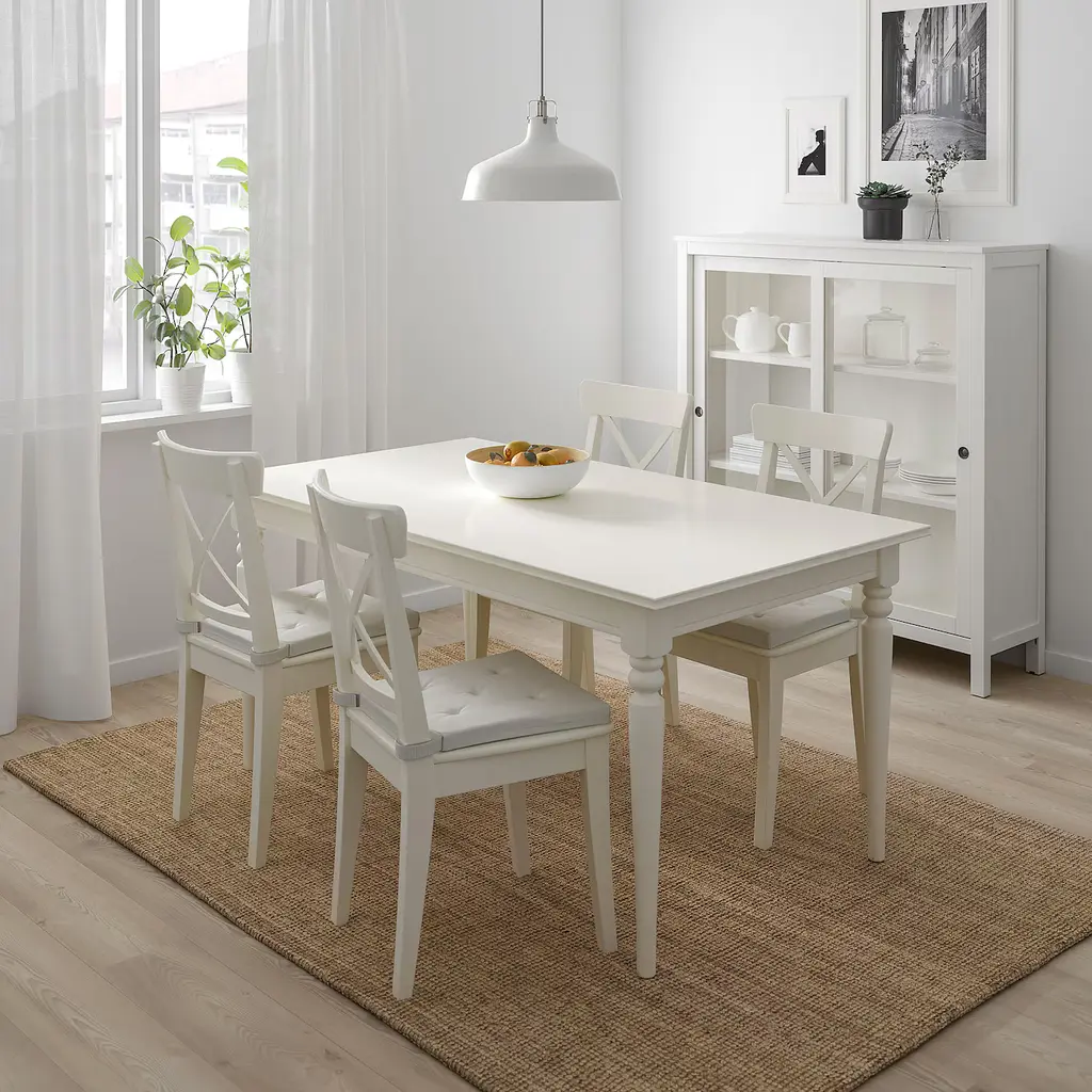 JUSTINA Chair pad - natural 17/14x16x2 ". The thick foam filling provides great comfort and long-lasting support. Hook and loop fasteners keep the chair pad in place. The chair pad has two identical sides so it can be turned over for even wear. Machine washable for easy care.