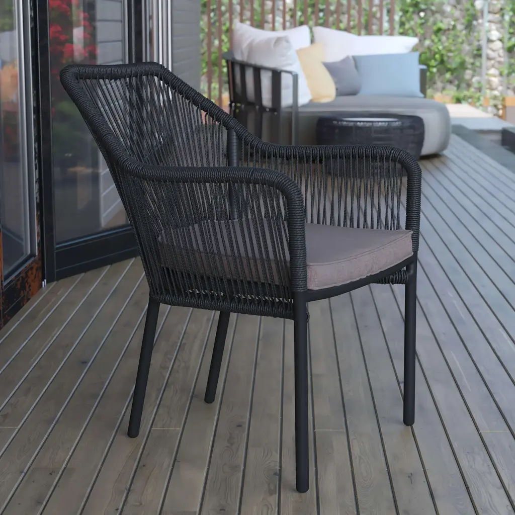 Update the look of your current outdoor space or fill that empty sunroom with this club chair. The modern, versatile look of this indoor/outdoor seating will look great on the deck, patio, or in the backyard. Long-lasting materials give this all-weather chair an upmarket vibe without the high maintenance. Have you moved into a new home and need ideas for your outdoor space? UV resistant and ultra-strong, the woven polyethylene fibers give the look of wicker that perfectly complements the aluminum frame. This chair holds up to 300 Lbs. static weight capacity and boast generously padded polyester seat cushions and integrated arms rounding out the on-trend aesthetic. No assembly is required for your new chair so you get instant enjoyment. Spot clean spills or dust with water and a neutral detergent or for a more thorough cleaning, remove the zippered covers and machine wash in cold water then lay flat to dry. Stackable up to 6 high, this chair can be easily stored or transported. Fixed plastic floor glides prevent damage to hard flooring surfaces when used indoors.