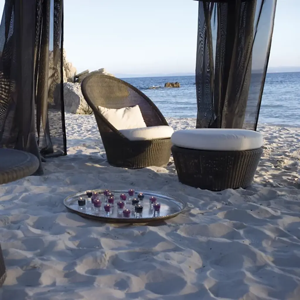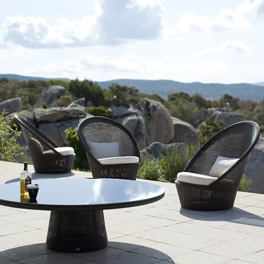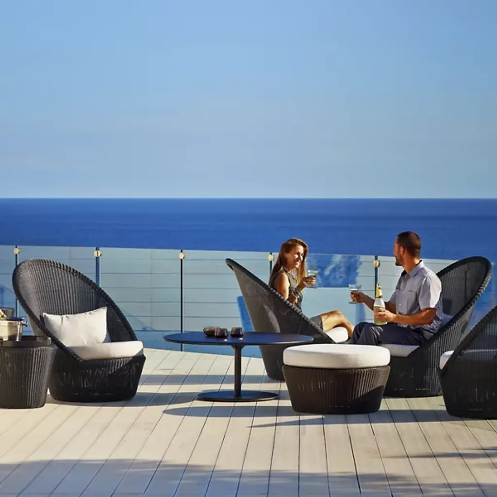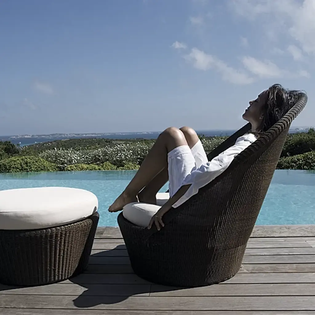 Add a little more comfort to your sun worshiping with the Cane-line Kingston Sunchair Cushion Set. It includes a large circular seat cushion and lumbar cushion made out of Sunbrella acrylic outdoor fabric. The cushions' hardiness outdoors is ensured with QuickDryFoam fill.