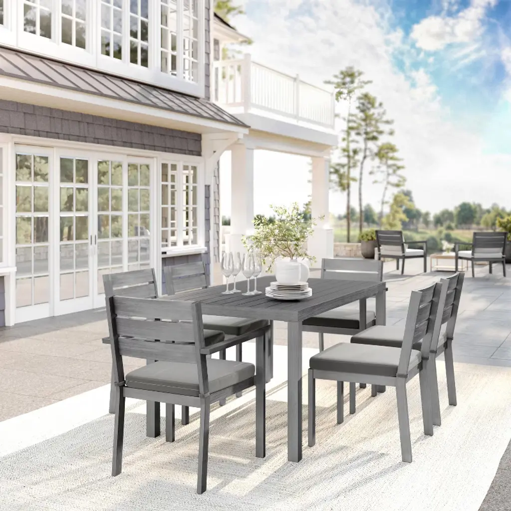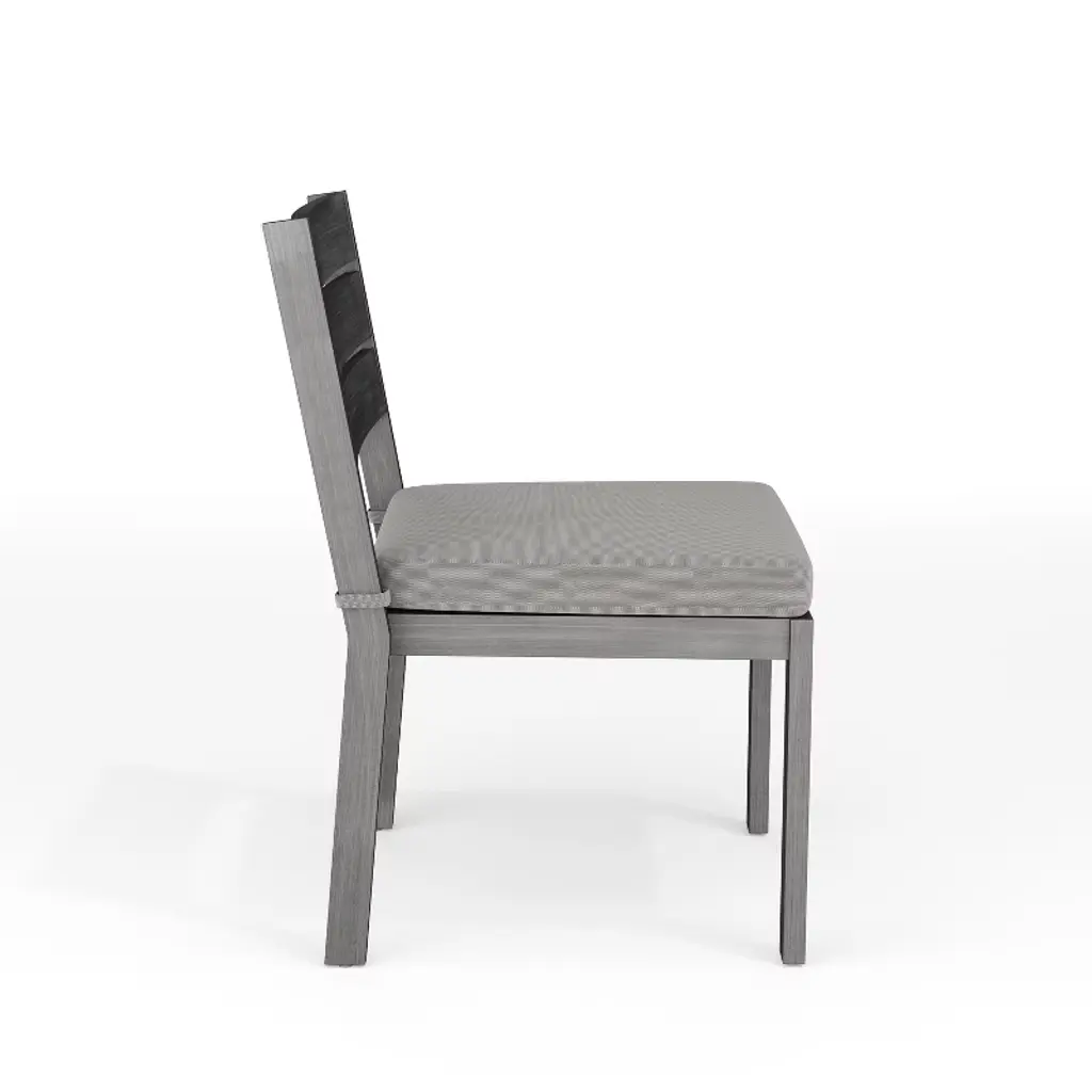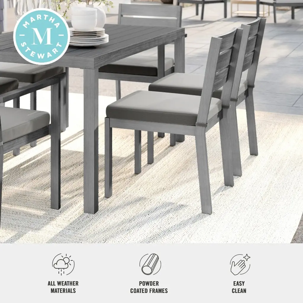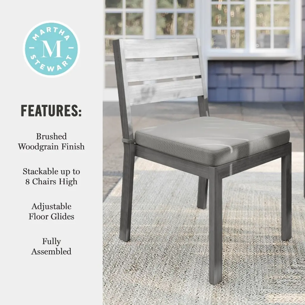 Elevate your indoor-outdoor sanctuary with the set of two Martha Stewart Bedford Patio Side Dining Chairs. Masterfully crafted with durable, rustproof aluminum frames in a beautiful hand-brushed woodgrain finish, these pieces lend elegance to any occasion. All-weather materials and a recommended stack quantity up to eight chairs high deliver peace of mind and welcome convenience by making it easy to store multiple chairs and save space when not in use. The addition of 2.5” thick seat cushions grant gracefully comfortable seating to pair with your morning coffee or a favorite novel. Part of our Bedford collection, these armless chairs pair wonderfully with the coordinating armchairs, accent chairs, barstools, and dining tables, perfect for crafting a custom collection that fits your entertaining needs. Arriving conveniently ready for use and requiring only minimal maintenance, these dining chairs are a must have for everyday use as well as special occasions