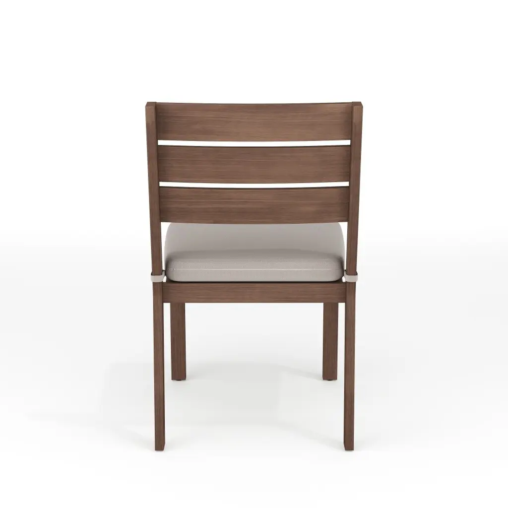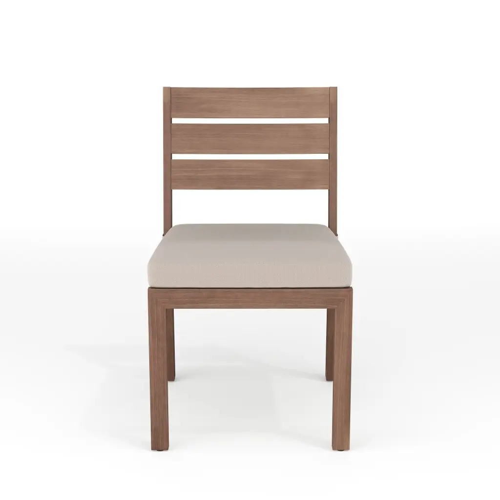 Elevate your indoor-outdoor sanctuary with the Martha Stewart Bedford Patio Side Dining Chair. Masterfully crafted with a durable, rustproof aluminum frame in a beautiful hand-brushed woodgrain finish, this piece lends elegance to any occasion. All-weather materials and a recommended stack quantity up to eight chairs high deliver peace of mind and welcome convenience by making it easy to store multiple chairs and save space when not in use. The addition of a 2.5" thick seat cushion grants gracefully comfortable seating to pair with your morning coffee or a favorite novel. Part of our Bedford collection, this armless chair pairs wonderfully with the coordinating armchairs, accent chairs, barstools, and dining tables, perfect for crafting a custom collection that fits your entertaining needs. Arriving conveniently ready for use and requiring only minimal maintenance, this dining chair is a must have for everyday use as well as special occasions.Elegant indoor-outdoor armless dining chair that elevates any patio into a sanctuary of comfortAll-weather aluminum frame with a hand-brushed woodgrain finish lends rustic beauty2.5" thick seat cushion crafted from all-weather Olefin fabricEnjoy hassle-free, space-saving storage with a recommended stack quantity of eight chairs highPair with other pieces in this patio collection for a custom arrangement to fit your hosting needsMaximum static weight capacity: 300 lbs.No assembly requiredUse a damp cloth to wipe clean; Unzip and remove cushion cover for machine washing
