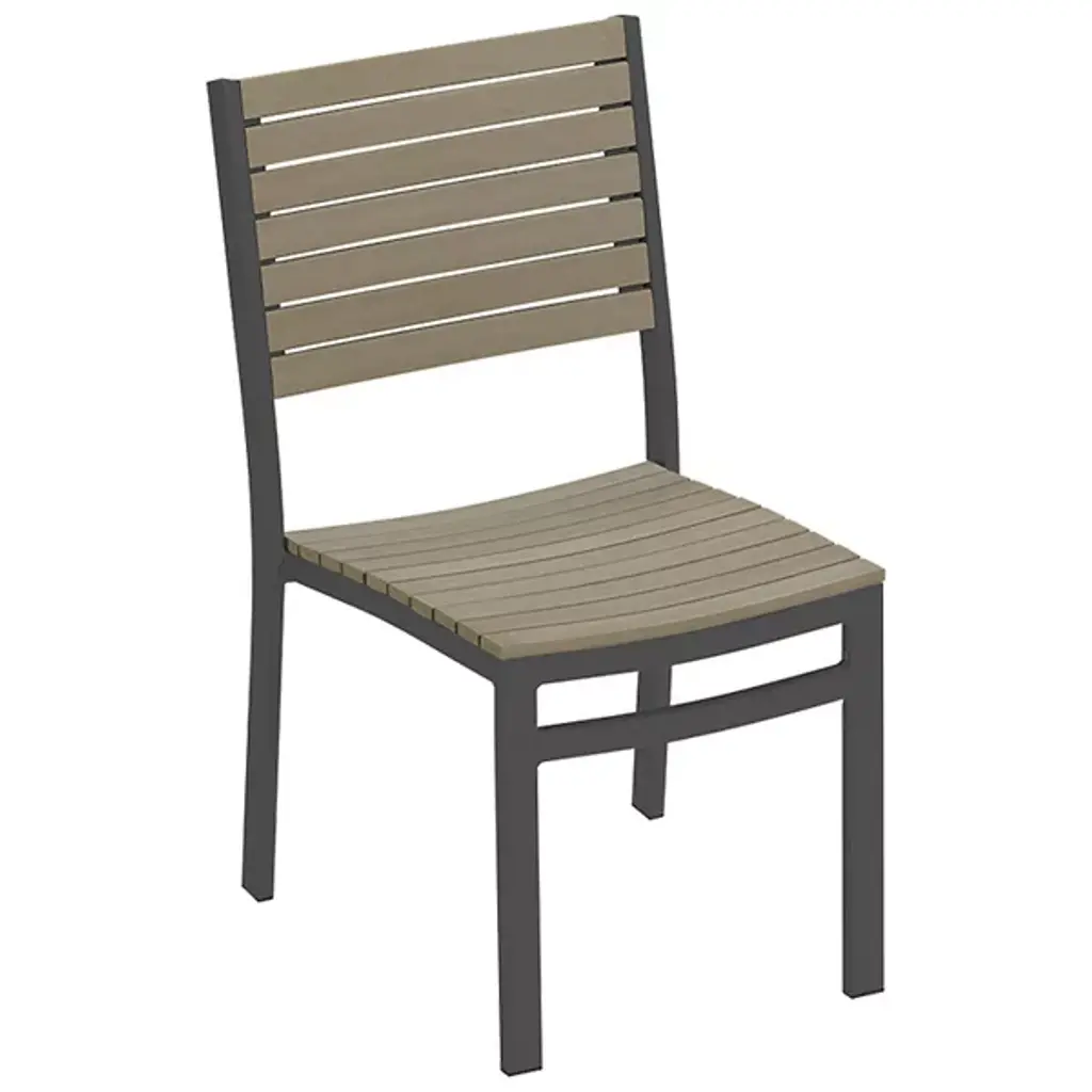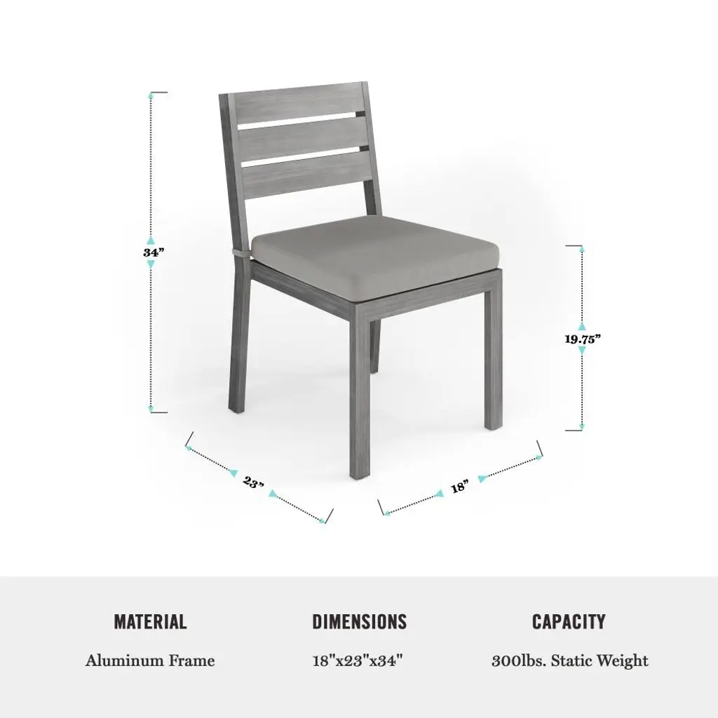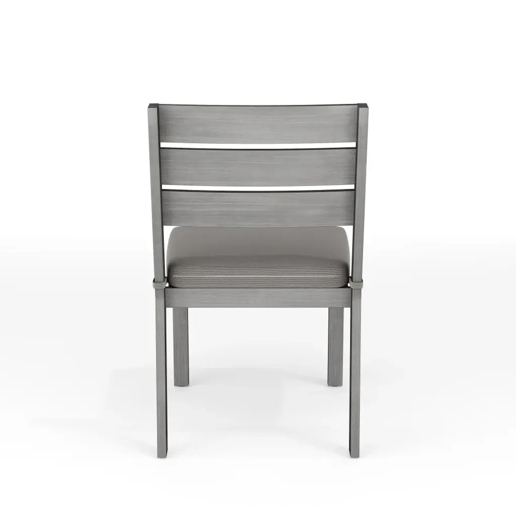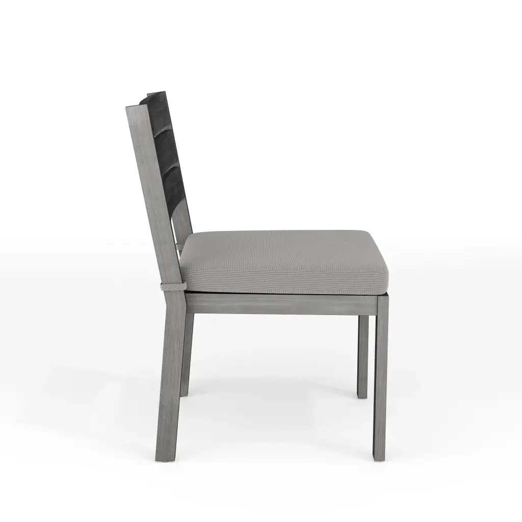 Elevate your indoor-outdoor sanctuary with the Martha Stewart Bedford Patio Side Dining Chair. Masterfully crafted with a durable, rustproof aluminum frame in a beautiful hand-brushed woodgrain finish, this piece lends elegance to any occasion. All-weather materials and a recommended stack quantity up to eight chairs high deliver peace of mind and welcome convenience by making it easy to store multiple chairs and save space when not in use. The addition of a 2.5" thick seat cushion grants gracefully comfortable seating to pair with your morning coffee or a favorite novel. Part of our Bedford collection, this armless chair pairs wonderfully with the coordinating armchairs, accent chairs, barstools, and dining tables, perfect for crafting a custom collection that fits your entertaining needs. Arriving conveniently ready for use and requiring only minimal maintenance, this dining chair is a must have for everyday use as well as special occasions.Elegant indoor-outdoor armless dining chair that elevates any patio into a sanctuary of comfortAll-weather aluminum frame with a hand-brushed woodgrain finish lends rustic beauty2.5" thick seat cushion crafted from all-weather Olefin fabricEnjoy hassle-free, space-saving storage with a recommended stack quantity of eight chairs highPair with other pieces in this patio collection for a custom arrangement to fit your hosting needsMaximum static weight capacity: 300 lbs.No assembly requiredUse a damp cloth to wipe clean; Unzip and remove cushion cover for machine washing