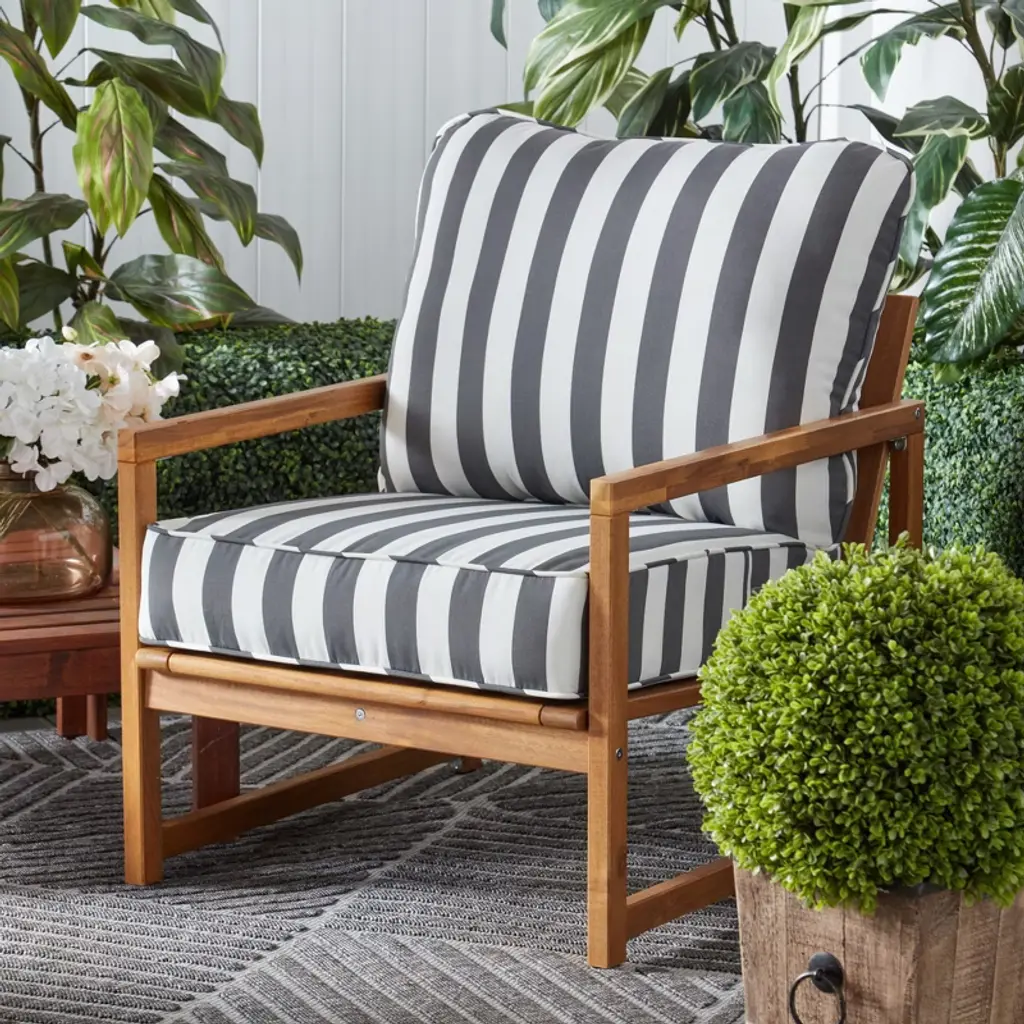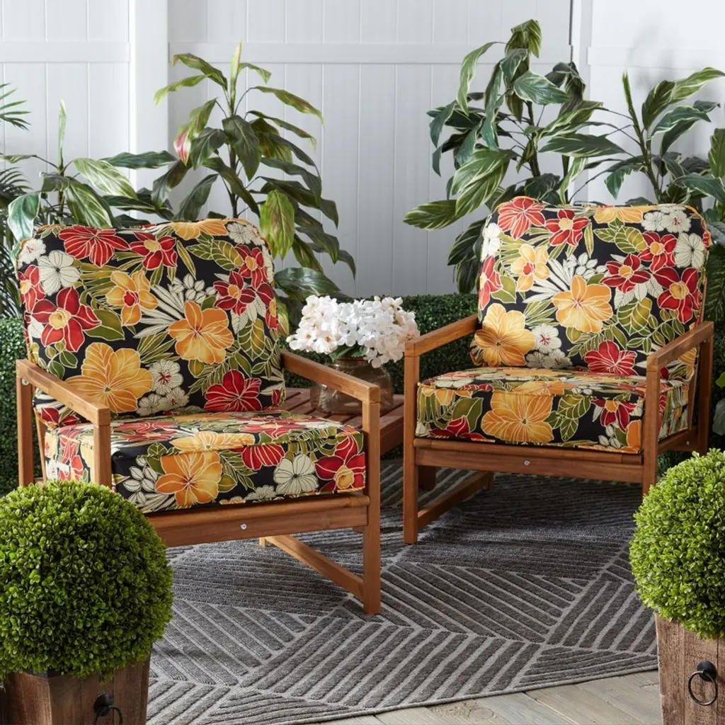 Add comfort and style to your outdoor space with this 2-piece Deep Seat Cushion set from Kensington Gardens. The set includes both a seat and back cushion, both covered in heavy-duty outdoor polyester fabric and finished with a matching cord trim for added style. Both seat and back cushions offer plush support so you can relax longer and enjoy time in your outdoor oasis. Our deep seat cushions are made to fit a variety of outdoor lounge chairs and sofas. Available in a wide variety of solid colors and vibrant prints.